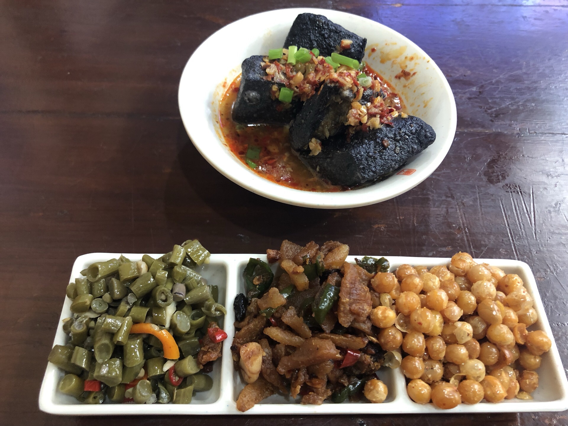 很小的店面,不怎么起眼,里面座位很多,上菜很快,每一道都十分好吃,一碗米粉可以吃的饱饱的,味道刚刚好,有柠檬水供应,小菜是自助的,炸黄豆和酸豆角不错,红糖糍粑上面的黑芝麻脆脆的,葱油粑粑最好吃。以后后再去的。