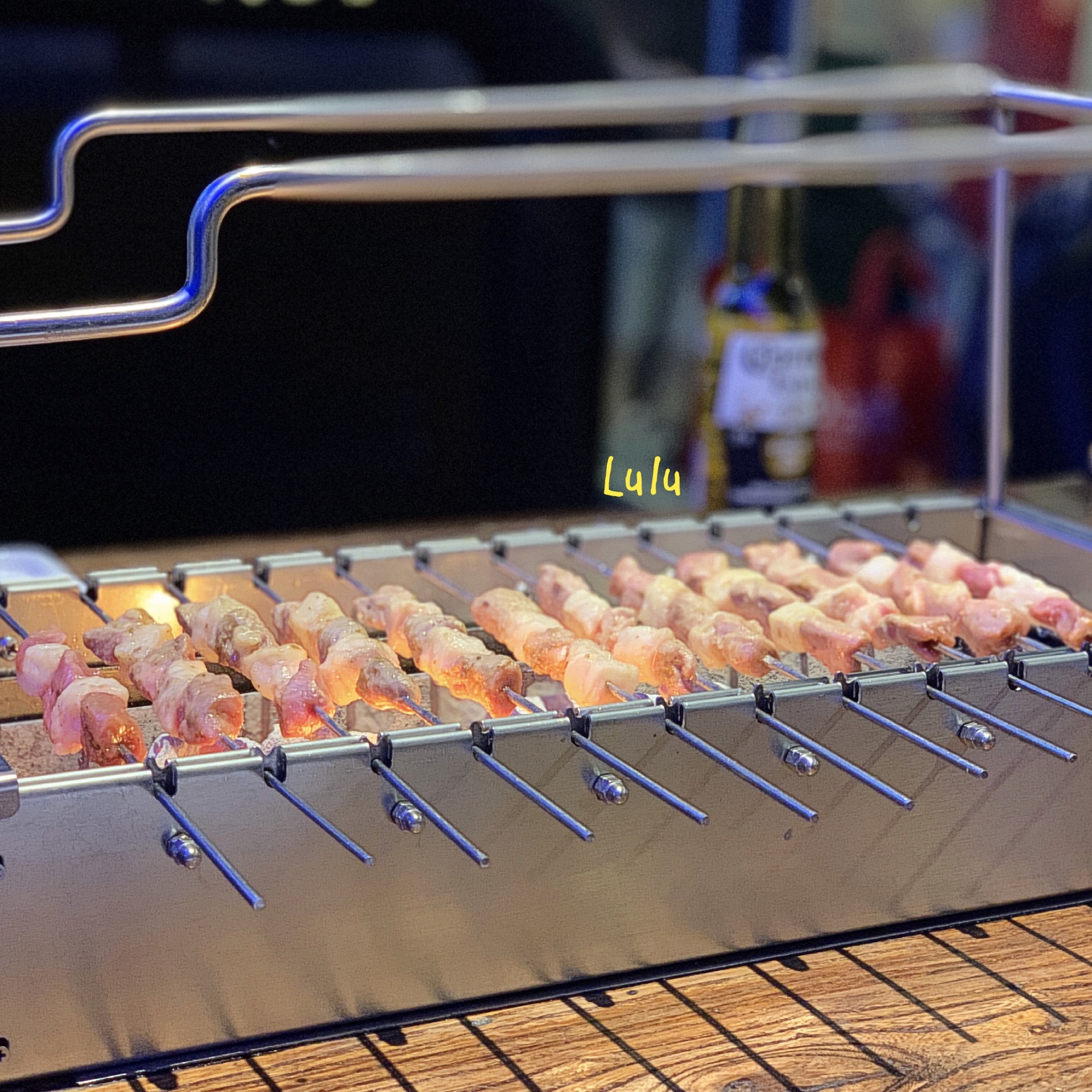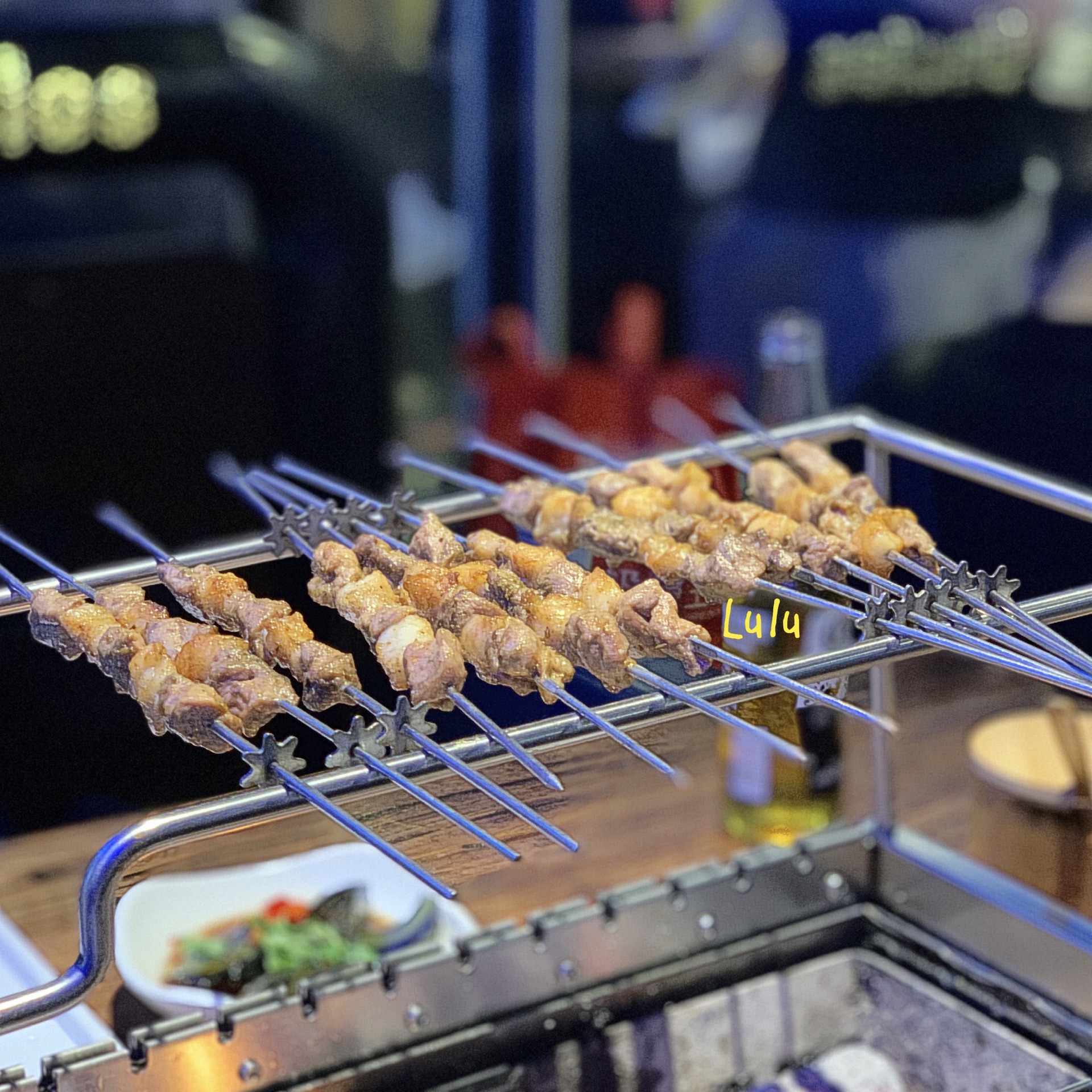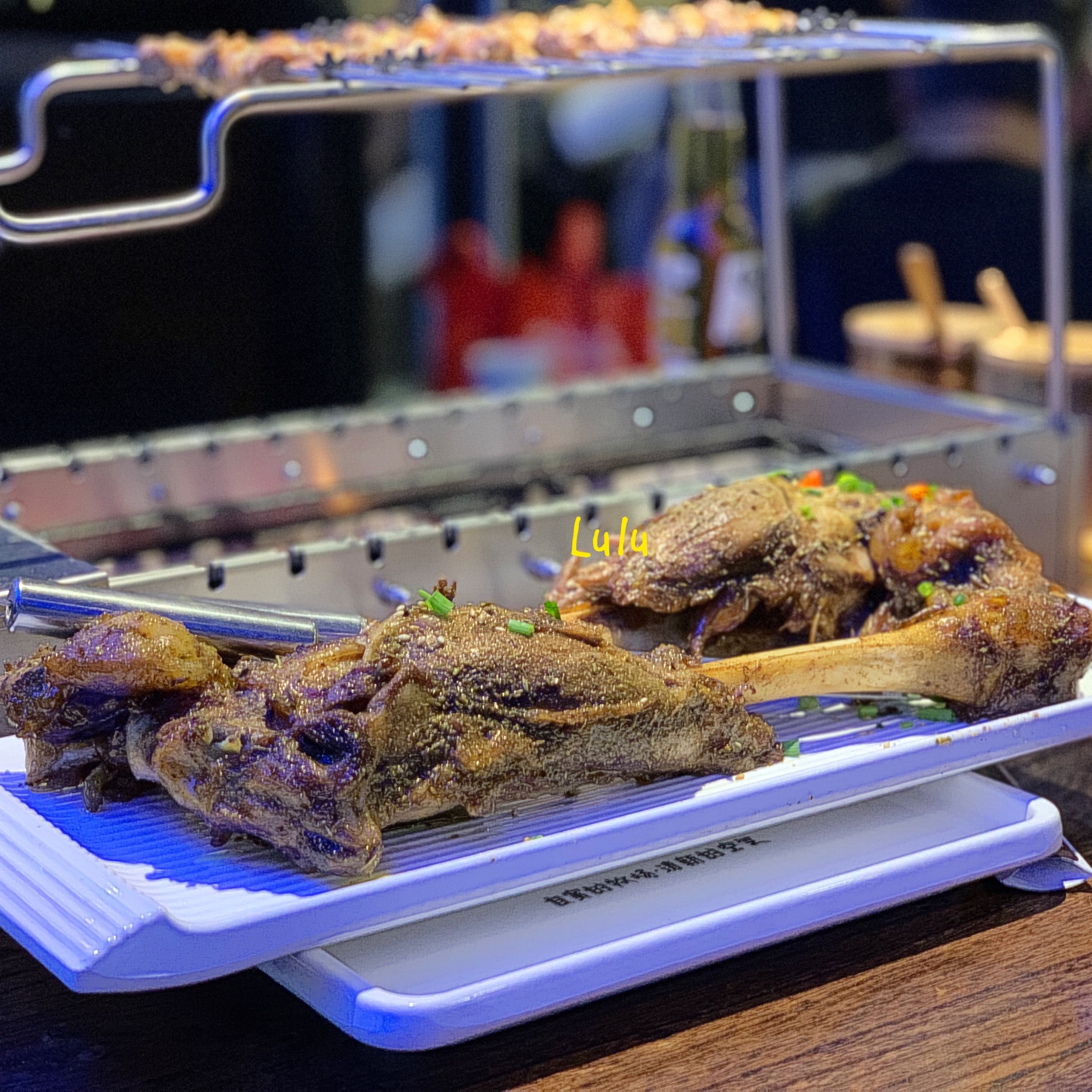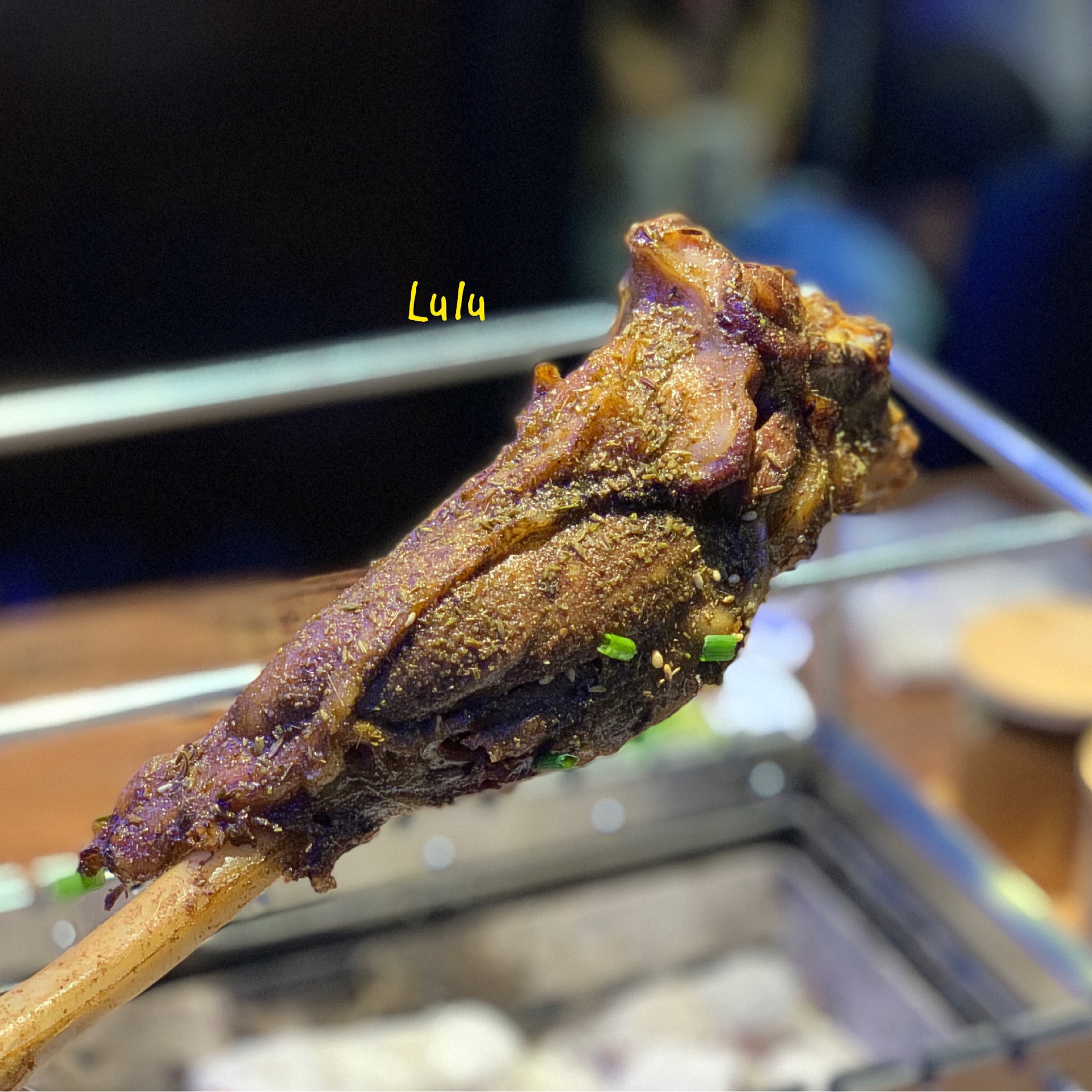 曾在草原吃过正宗羊肉串的露小姐,要正式向大噶推荐这家烤羊肉店。食材羊肉每周从内蒙古新鲜空运而来,肉质细嫩,完全没有膻味。这里的羊肉串会让你惊叹,这才是真正的羊肉串,世界上最好吃的美食之一。 ————— 三个蒙古大叔 —————— 位置 灵石路851号 近原平路 灵石路沿街不少餐饮店,唯一排队的就是三个蒙古大叔烤羊肉串了。是一家不用看门牌号也能快速辨别找到的热火朝天的烤肉店。 营业时间 周一至周五 16:30 — 03:00 周六周日 16:00 — 02:30 交通 自驾可免费停车,地铁7号线大华三路站 用餐建议 不想排队的话,建议早些去等开门。我今天17:00到的,前面有40几桌等位, ————— 露小姐的晚餐 —————— 二人晚餐,满当当的一桌肉,丰富而味美。人均130,难怪是要大排长龙。 锡林郭勒现穿羔羊肉串 一打54元 我的建议是必点,一打起点,实在太美味了!羊肉极嫩,一点塞牙的机会都不给,满嘴的鲜嫩多汁。羊肉肥瘦相间,又香又软,这才是真羊肉串的滋味,吃过的人会懂。 一打羊肉串上桌,热情的服务员小哥哥会利索的把羊肉串放在烤架上,烤架是自动控制的,羊肉串会在烤架上自己转圈圈。利索的服务员小哥哥会按照丰富的经验,及时把羊肉串拿出放在上层架子上。对了,小哥哥还会撒孜然,而我也会因为这把孜然而更爱这串肉串。 苏尼特秘制烧羊棒 一根37元 羊棒上的肉,可能是最好吃的部分了吧,贴近骨的活肉,嫩到令人难忘。肥瘦刚好,嫩肉带着汁水在口中爆开,羊筋软糯,口感绵绵柔滑,满口生香。 蒙古浓香奶茶 一壶18元 蒙古奶茶一定要点,有甜咸可选,我更喜欢咸咸的奶茶,茶清香,奶味浓郁。那一丝咸味,把茶与奶平衡的极好,是一杯有层次感的美味饮品。 烤菠萝 一串6元 烧烤界小清新,酸甜可口,多汁细腻。烤过后的菠萝,热呼呼的清甜,满满的汁水超级好吃,一定要尝一尝。 烤南美大虾 一只5元 虾肉紧实,烤过后的大虾,虾壳脆而虾肉甜。虾肉因烧烤而变得没什么水分,吃起来特别香,像是在吃烤大虾干。 剁椒皮蛋 一份18元 非常好吃的剁椒皮蛋,一点也不辣,清新开胃。因为中间隔着烤架,递来递去不方便,所以这里的凉菜都是点一份上二盘,真真的量大实在。