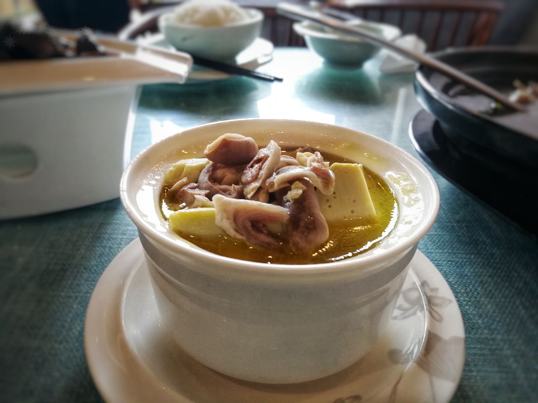 经常听朋友提起茶油香,恰逢六一儿童节,带上大宝宝来吃香的。落座没多久就上了小菜和米汤,都是热乎乎的