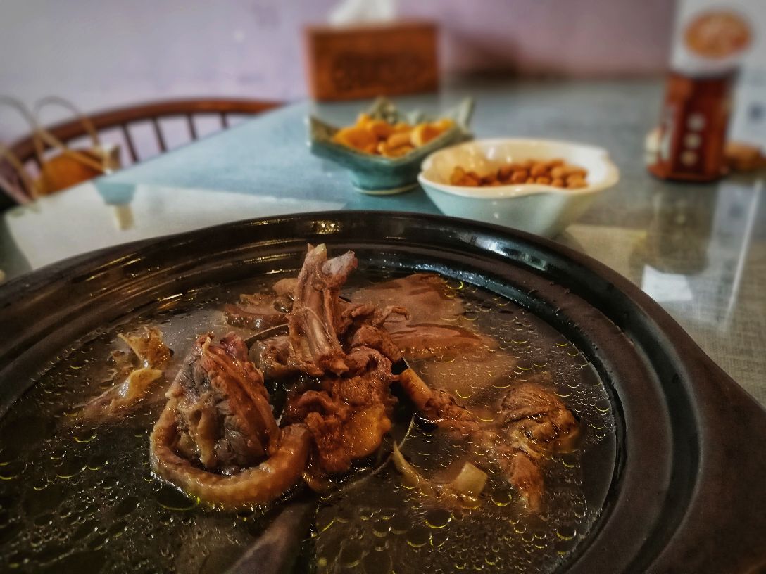 经常听朋友提起茶油香,恰逢六一儿童节,带上大宝宝来吃香的。[呲牙] 餐厅主打农家菜,装潢看得出是花了心思的,整体看着清幽干净。落座没多久就上了小菜和米汤,都是热乎乎的。 |茶油土鸭汤/份^汤头清甜,鸭肉带着皮都不觉油腻,十分难得,里面还加了鸭血。 |茶油猪肚蛋^猪肚切丝,茶油香很浓的一道菜,大概是店里的主打,搭配蛋豆腐,清清爽爽。 |茶油焖黑鸡/只^团购的两人餐大概是小半只,分量合适,加了酒焖制,很古老味。 |炒笋叶^本地笋应该没有这么嫩,好想问问老板哪里进的货,可以代购不?[馋] 总体上大宝宝表示很满意,可以再带她来~