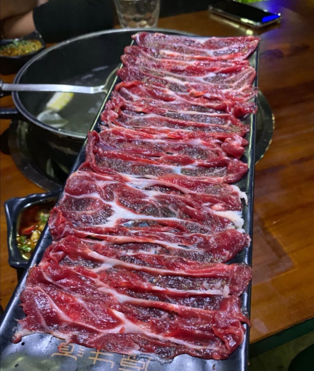 肉质都很新鲜,鲜牛肉口感还不错,人均消费不便宜花趾肉,胸口油,吊龙,每次去吃火锅必点,切的真的很薄,每片尽量在碟子里面展开,铺的很满,煮一下就熟了,不过分量看起来不大。肉质都很新鲜,鲜牛肉口感还不错,人均消费不便宜。