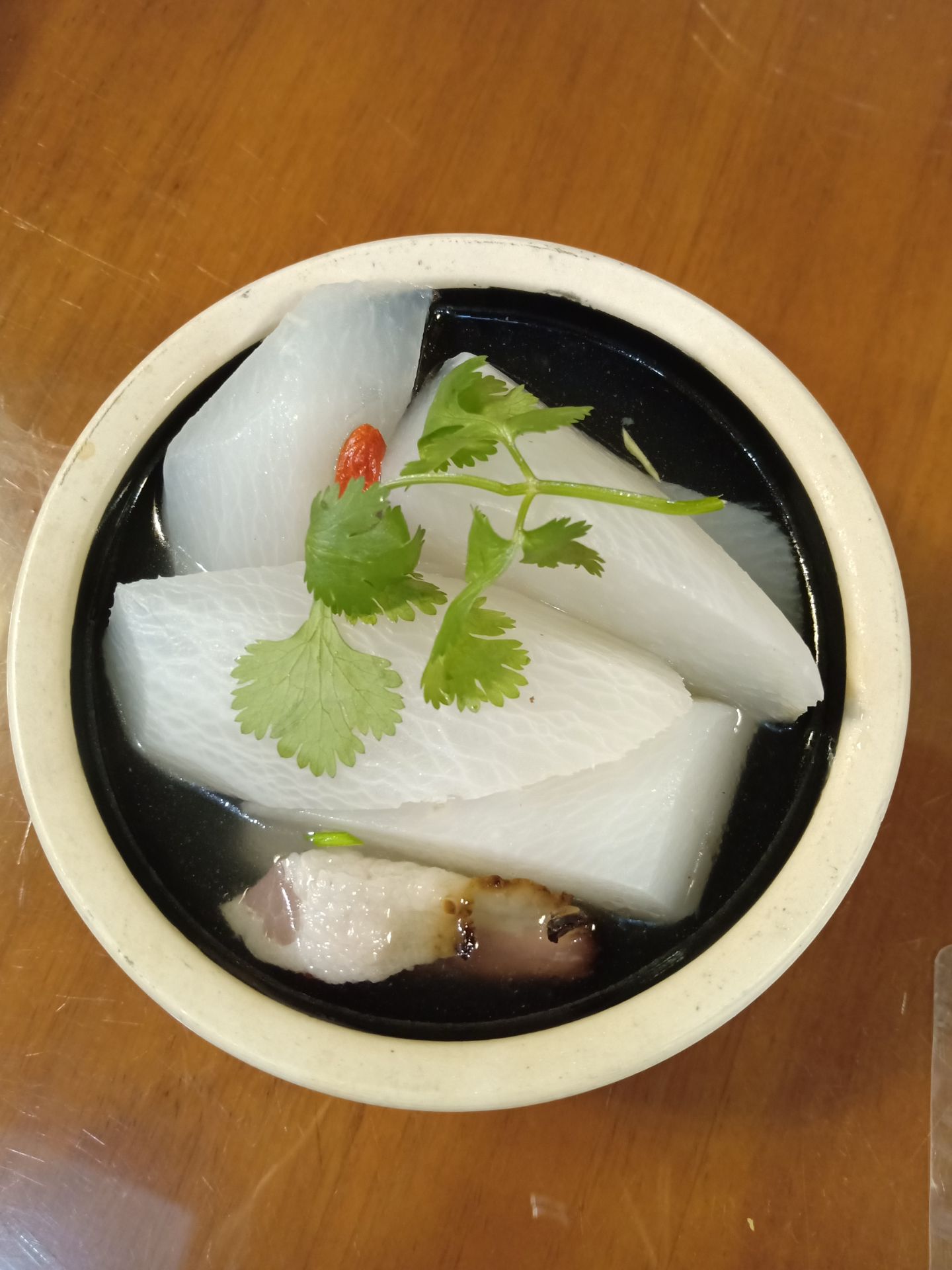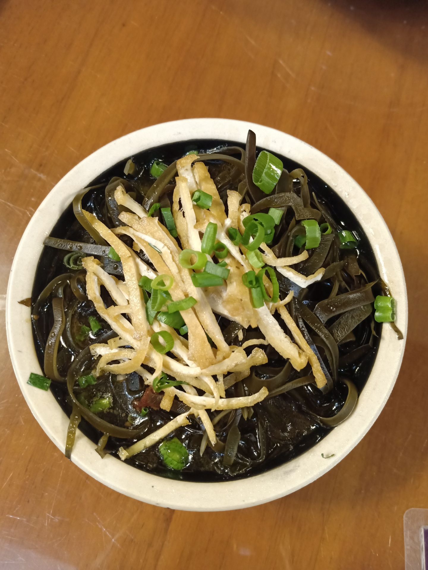 萝卜是最好吃的,清香,最喜欢的一个菜,海带,也好,就是长短不一,个别略硬,呱呱,说是荞麦面制作...