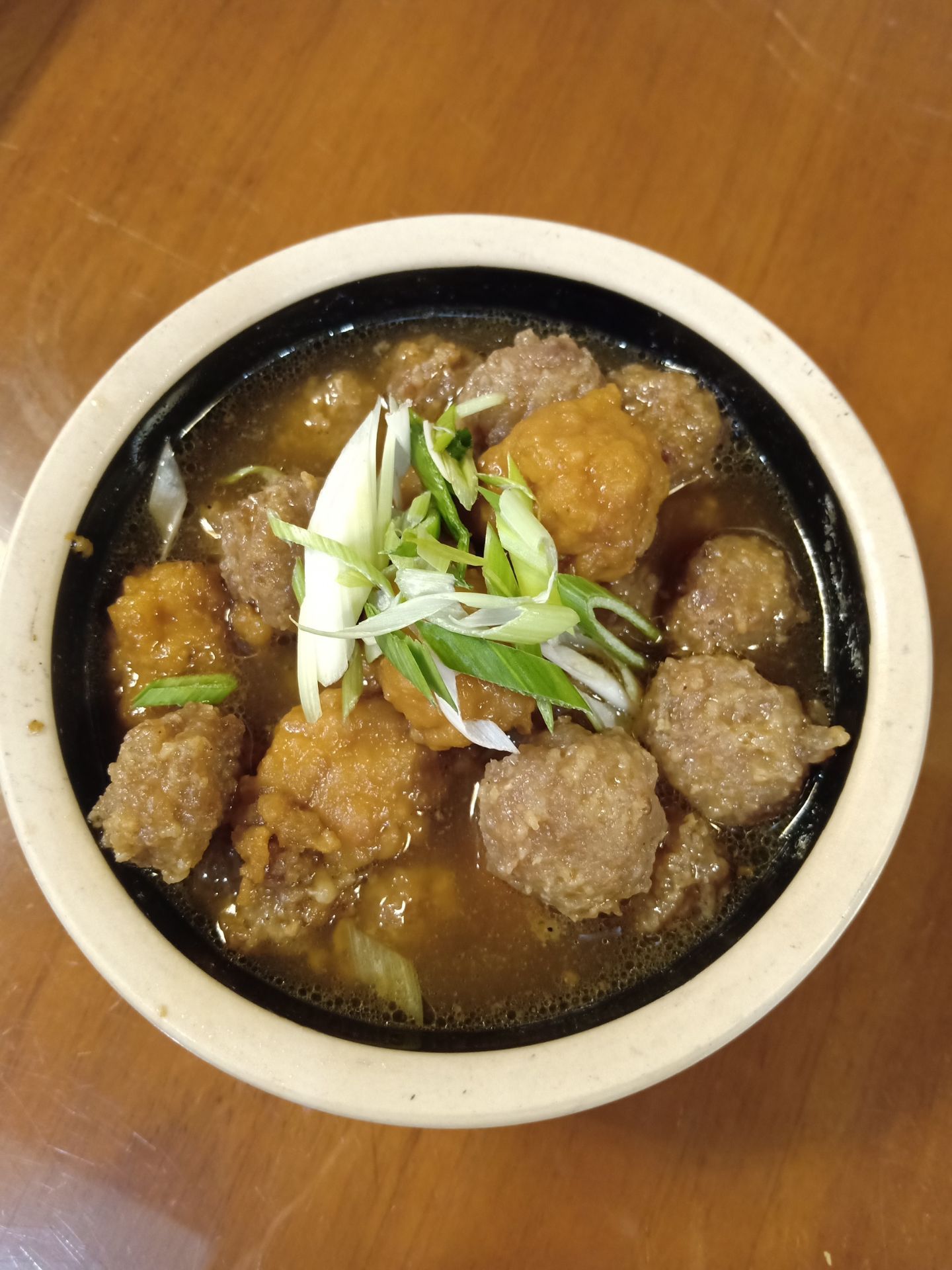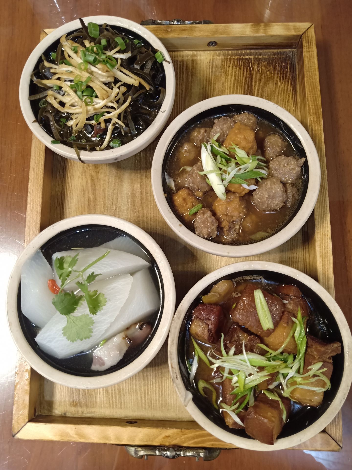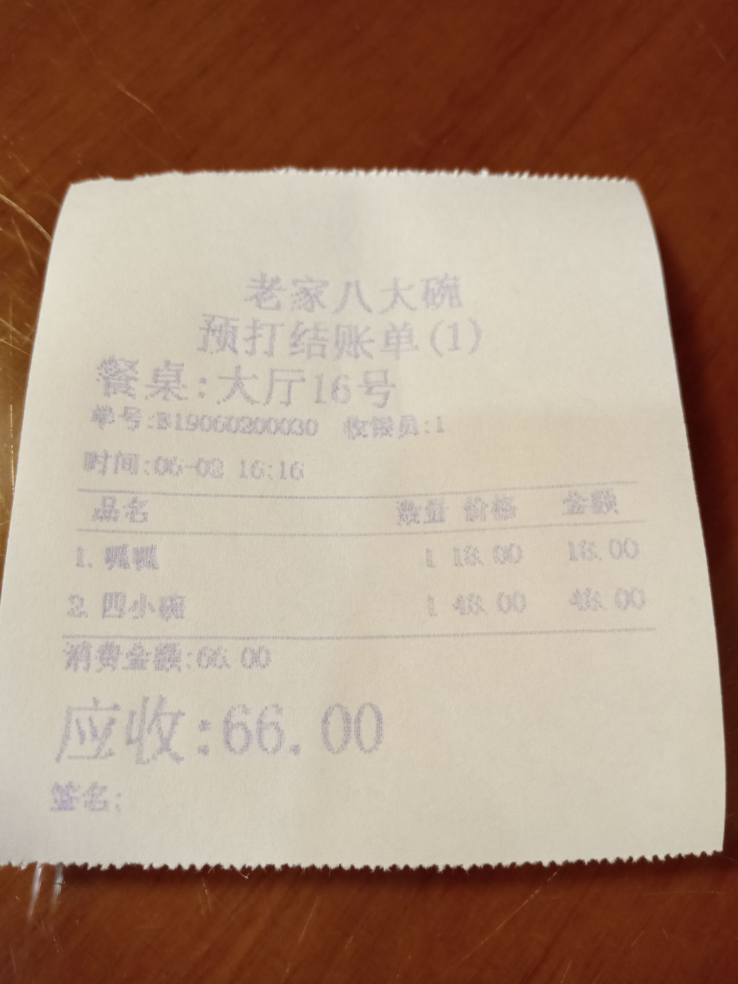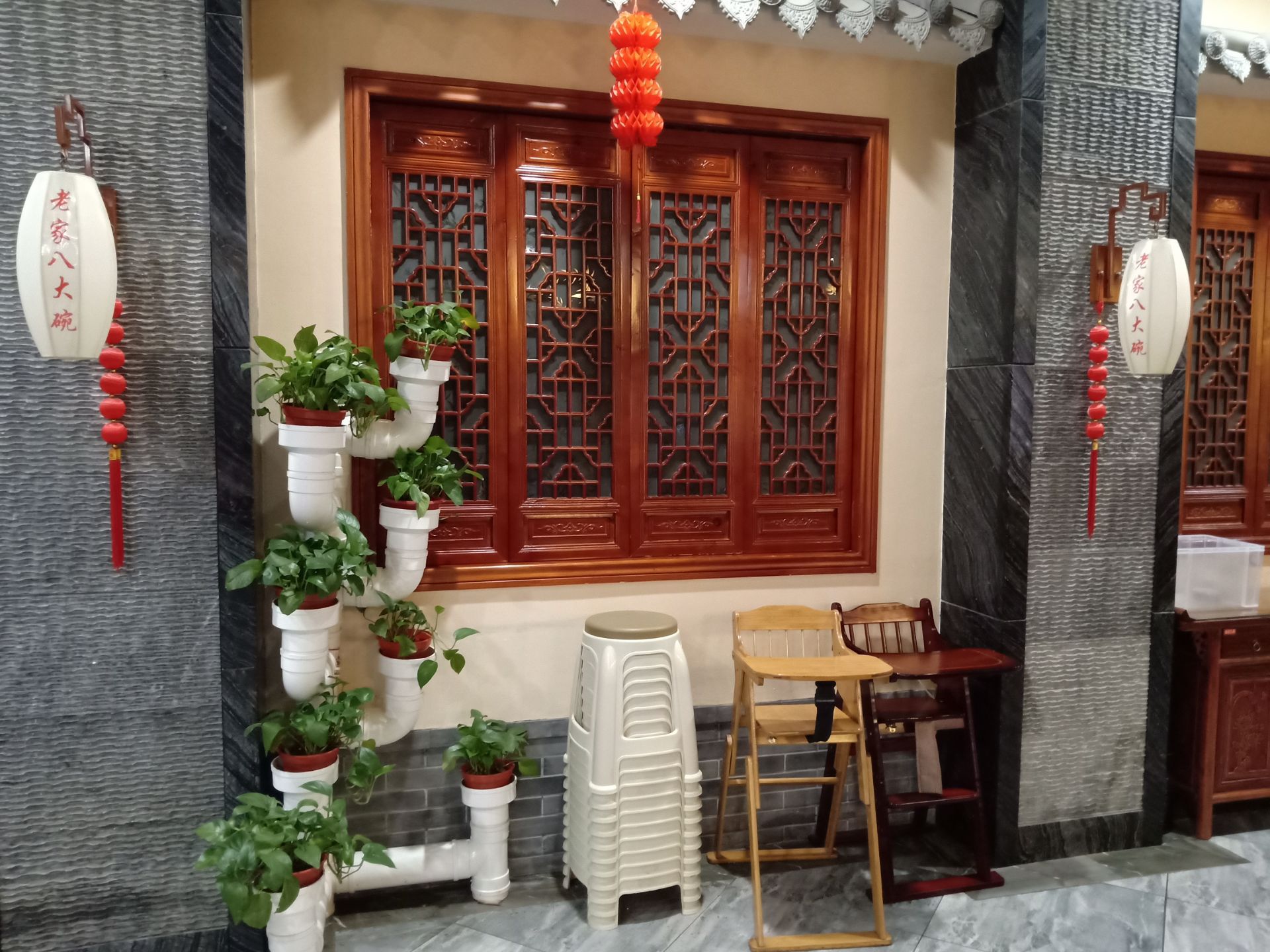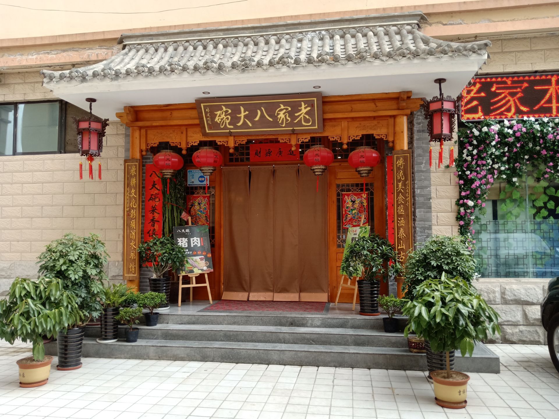 老家八大碗,闻名而来,名字起的好,祖先故里自是子孙老家,从天水火车站,背对着高高的大钟,朝南走,穿过渭河大桥,一路赏景一路行,走到桥尽头,顺着天桥左手边下来,不远处即见凯悦大酒店,转过来就是本店。敞亮的大厅,空无一人,真不错 。点了一份四小碗,还有念念不忘一直无缘吃上的呱呱,俩人已经足够多了。餐厅极其干净清爽,服务员态度都极好,声音柔柔顺顺的,耐心解答了我的诸多疑问,并提了一点点建议,并不强求,语气令人舒适。万分感谢。尤其是有一个服务员,岁数略大,态度极为谦逊,得知我会写好评,满脸笑靥如花,发自内心的开心,她还说就算家里来了客人,也应该笑脸相迎啊,何况,给老板做事,要对得起人家的信任,多么朴实啊,令我肃然起敬。说说菜品吧,不敢说地道,因为不是本地人,只能说几句外行话了,首先,卖相还不错,而且,四小碗是砂锅材质,保温性能也不错,四个菜,都是家常做法,统一炖菜,本色味道,闭着眼睛也能吃出是什么来,不油不腻,调料正好,红烧肉,香嫩可口,肉丸子,汆得不错,蛮好吃,萝卜是最好吃的,清香,最喜欢的一个菜,海带,也好,就是长短不一,个别略硬,呱呱,说是荞麦面制作而成,黄瓜切成丝,拌上一种红颜色的酱料,不辣不咸也不香,说不上什么味道,整体来说,服务非常满意,用餐环境舒适,也是在天水近一周来吃得最贵的一次,选择这里,还是对的。记住了,老家八大碗。