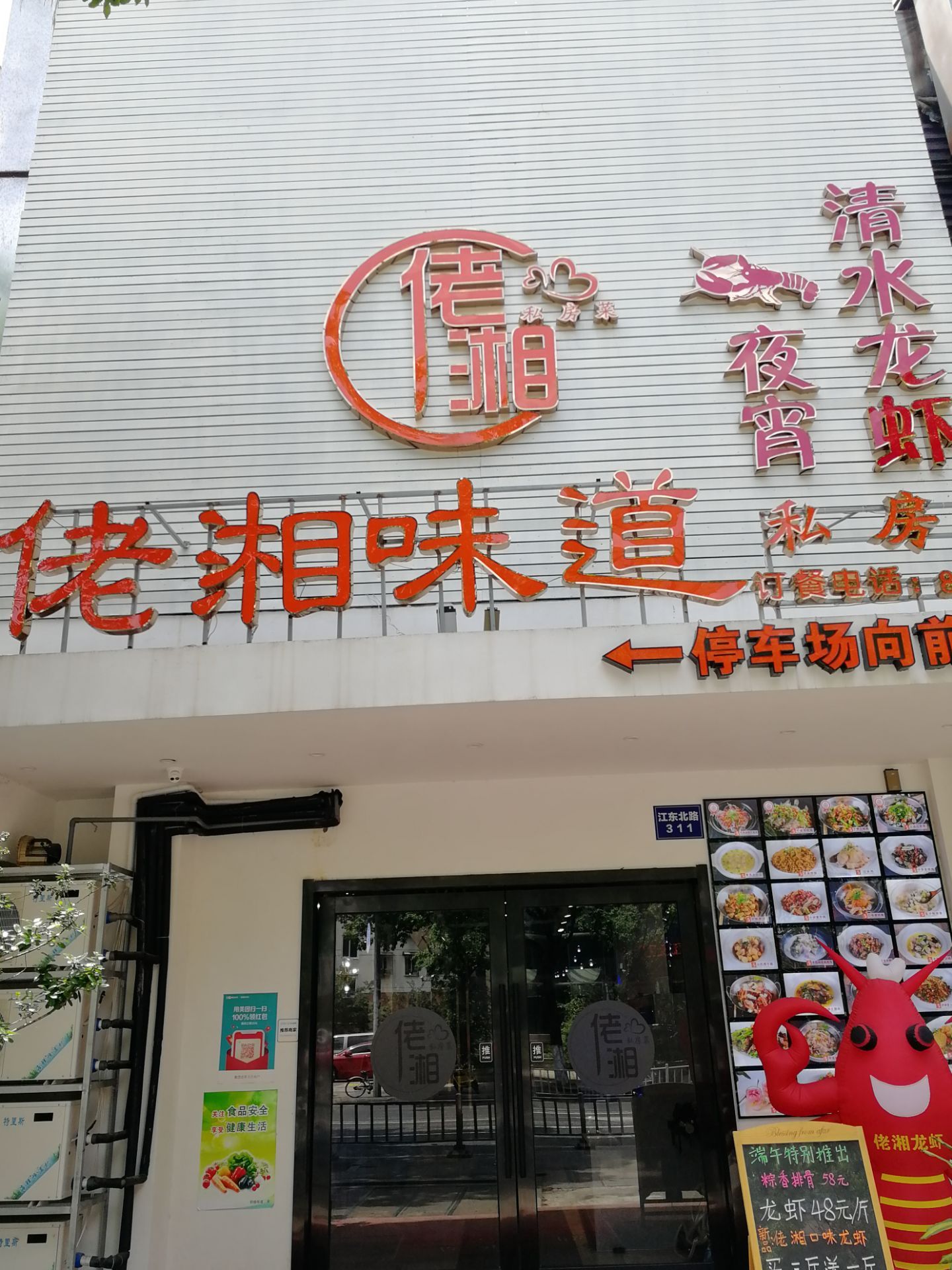 佬湘私房菜在浙江省宁波市鄞州区的江东北路311号,靠近玉米楼。这是一家专门经营龙虾等菜肴的餐饮店。据说排名非常靠前。今天午后时分,专门前往去了一次。我要的是蒜泥龙虾,大厨的速度很快,大概5分钟左右,一大盆热气腾腾的蒜泥龙虾就递上桌来。口味倒还不错。