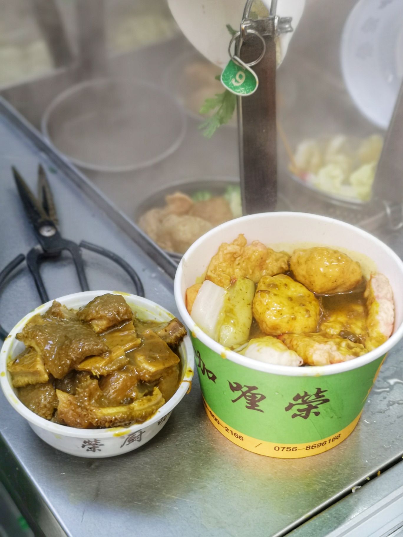 #澳門美食# 對於一個熱衷於咖喱的吃貨來說 一週吃上個三四次咖喱魚蛋也不算多 還好公司附近到處都是咖喱牛雜店 很多年前來過咖喱榮 那時候覺得它的咖喱不夠好吃 沒想到這次竟然翻盤了 改良過的咖喱味道變得好香 即使不吃牛雜 一大碗魚蛋魚丸金針菇娃娃菜各種的也吃得好飽 最喜歡的當然是龍蝦芝士丸啦