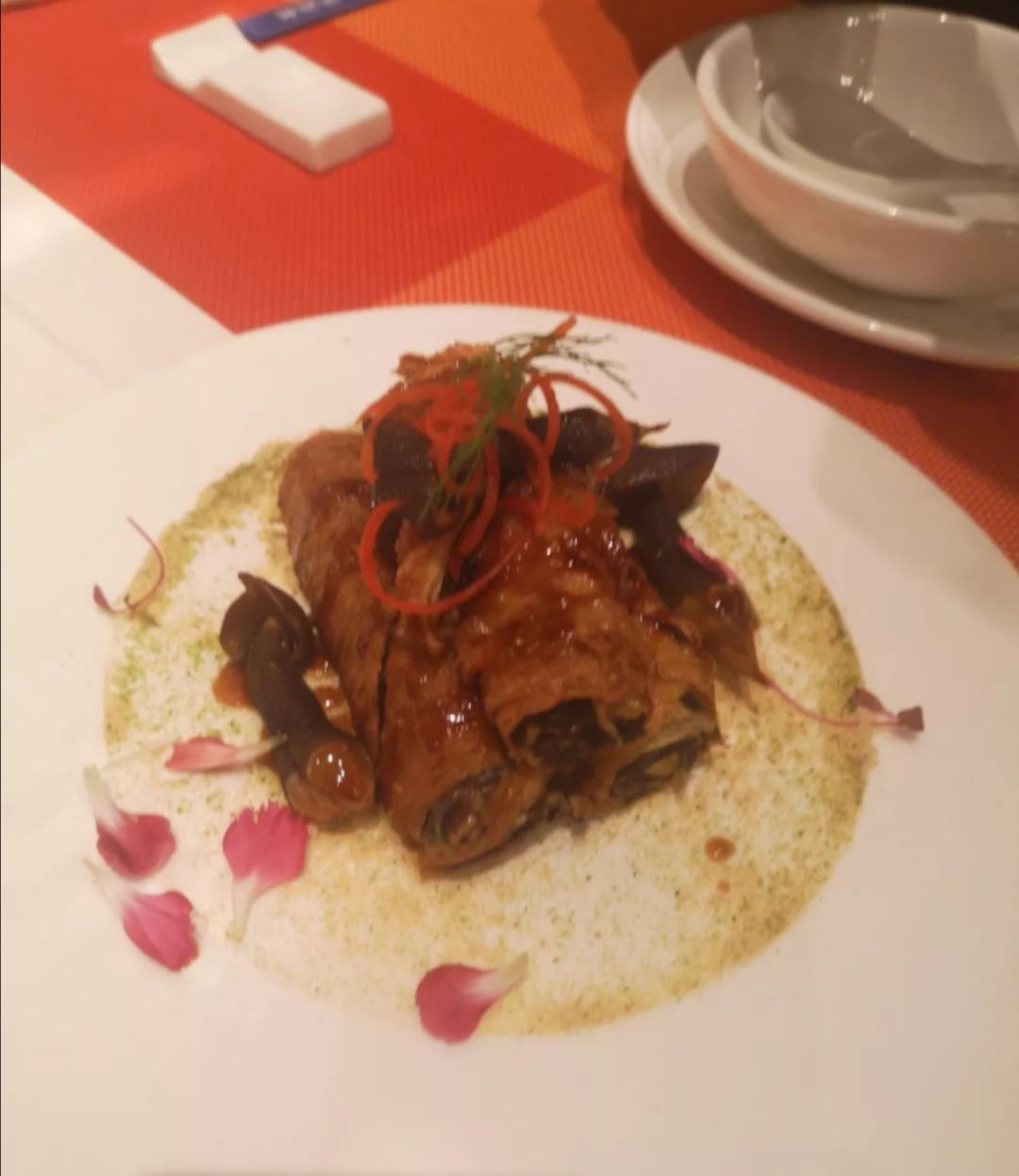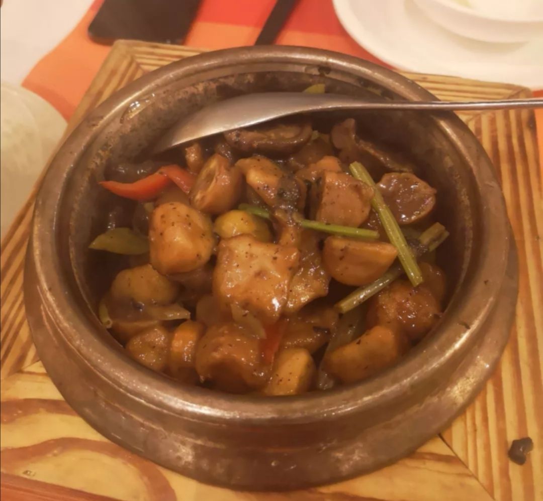 网友2019-06-04海苔豆腐,海苔很香,豆腐很嫩,很喜欢这种清淡的。咖喱时蔬配手抓饼,咖喱味很浓郁,和手抓饼搭配太棒了咖喱时蔬配手抓饼,咖喱味很浓郁,和手抓饼搭配太棒了。 石锅板栗猴头菇,上桌后要记得多翻炒一下,容易粘锅,味道还行。 海苔豆腐,海苔很香,豆腐很嫩,很喜欢这种清淡的。