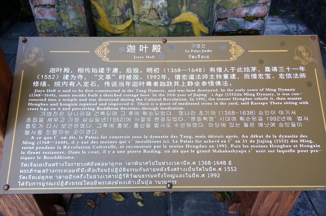 迦叶殿也叫迦裟殿,位于鸡足山天柱峰半山腰的东面,殿内的藏经楼收藏有丰富的经书,殿前有高达8.6...迦叶殿也叫迦裟殿,位于鸡足山天柱峰半山腰的东面,殿内的藏经楼收藏有丰富的经书,殿前有高达8.6米的外饰金泊铜质,万佛塔。