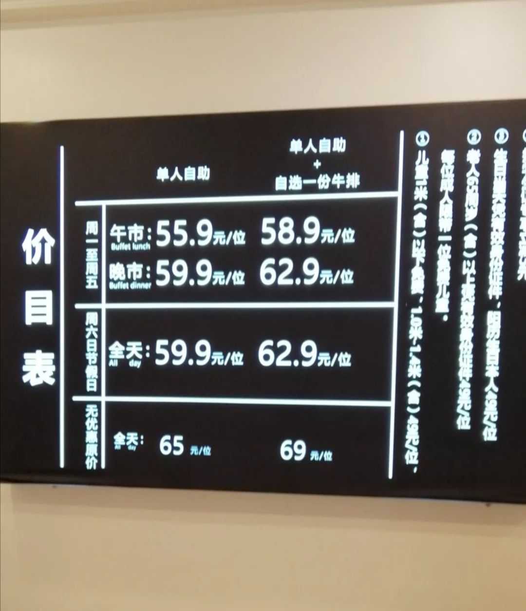 网友2019-06-04在长春绿园吾悦广场四楼,很好找,人也很多在长春绿园吾悦广场四楼,很好找,人也很多。但是非常不合适,价格有点高,小孩一米就开始收费了,而且还不便宜。另外说是西餐自助,可牛排每人只能选一个,而且半天也上不来,关键还不好吃。