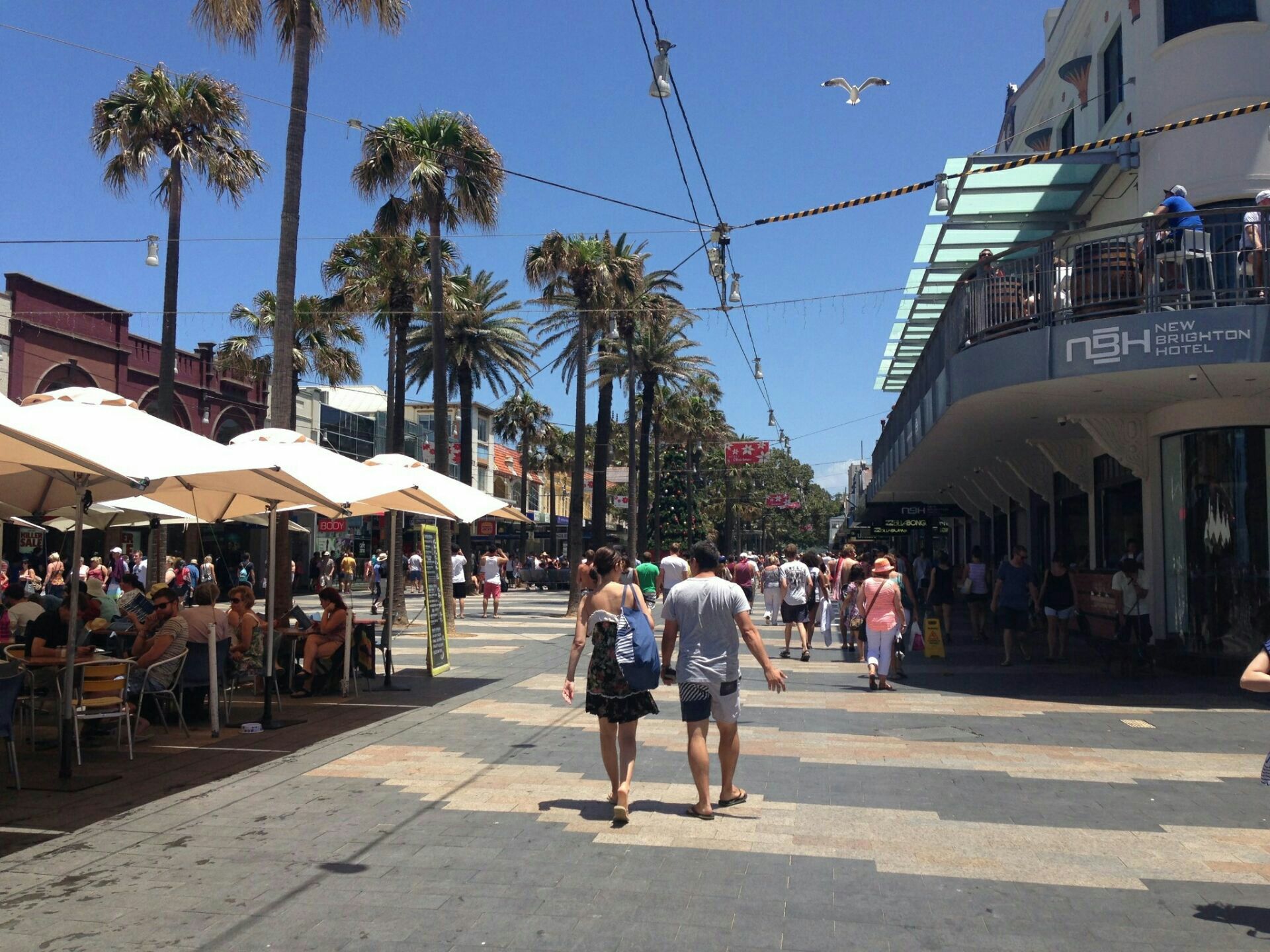 这是悉尼曼丽海滩边上著名的步行街,这条街道上的商业开发非常的发达。开满了大大小小的商店和餐厅酒吧