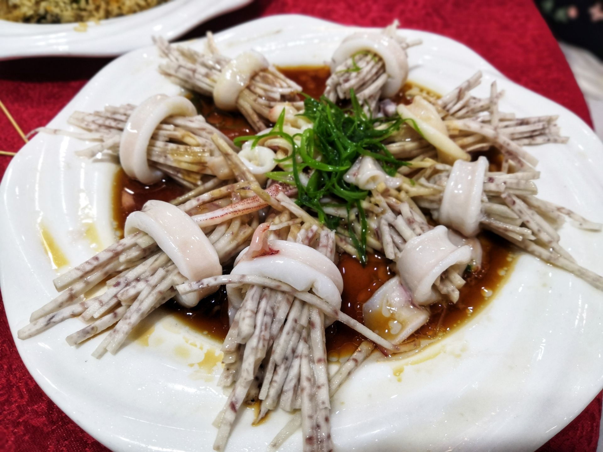 【铁板虾】味道不错,宝贝一个人吃了半盘。 【鱿鱼芋丝】外观挺有特色的一道菜,芋丝松软,鱿鱼QQ的