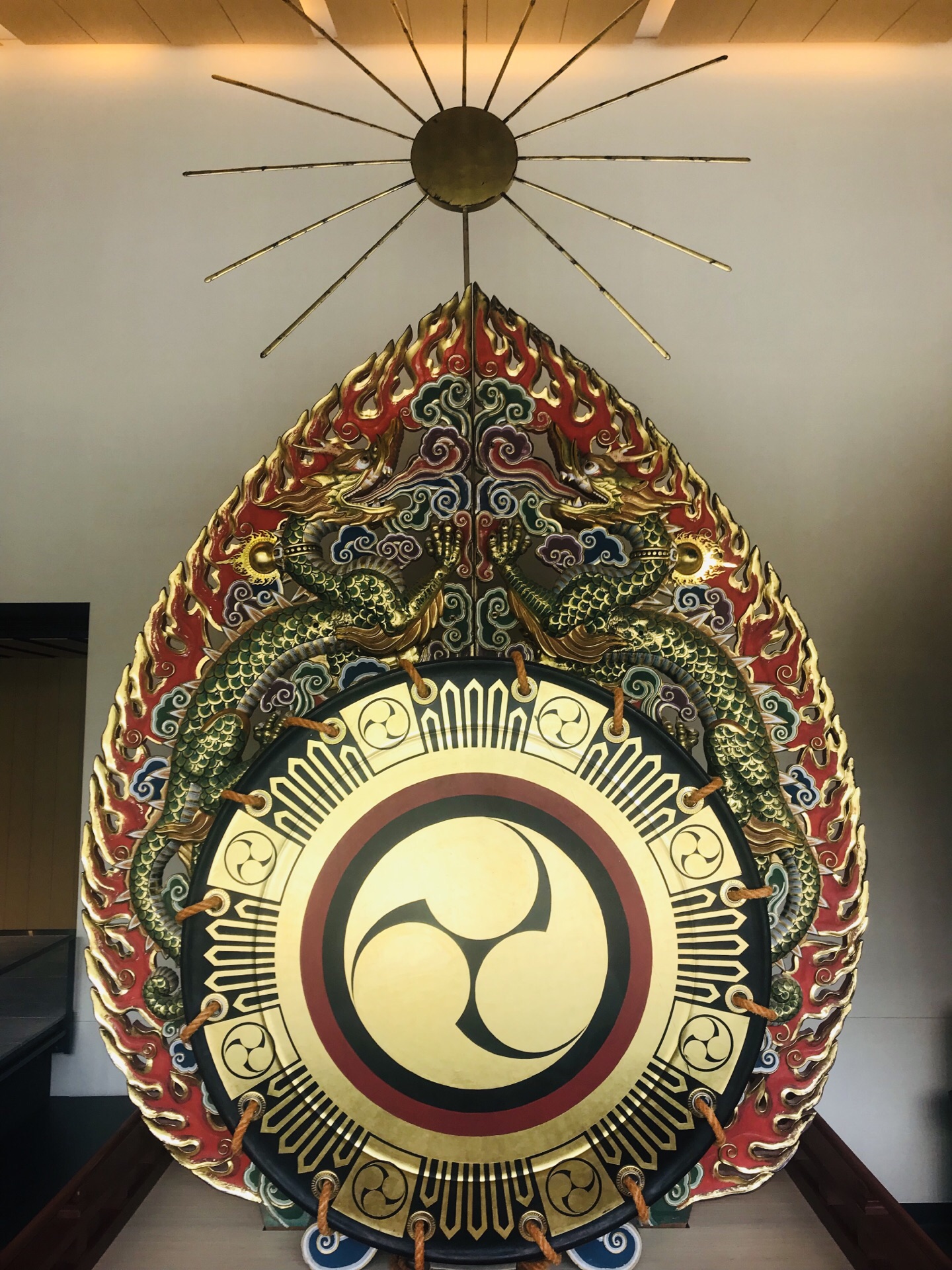门票挺贵的,展品很单一。 五一去的时候展出的是鼉太鼓だだいこ,一楼的两个复制品随便拍照,二楼原件以及其他舞乐演奏的器具,不准拍照。原件的展厅灯光及其昏暗,鼓上的原色也斑驳得很,个头巨大,满震撼的。其他的展品,面具很棒,但是总的来说,不看也罢。