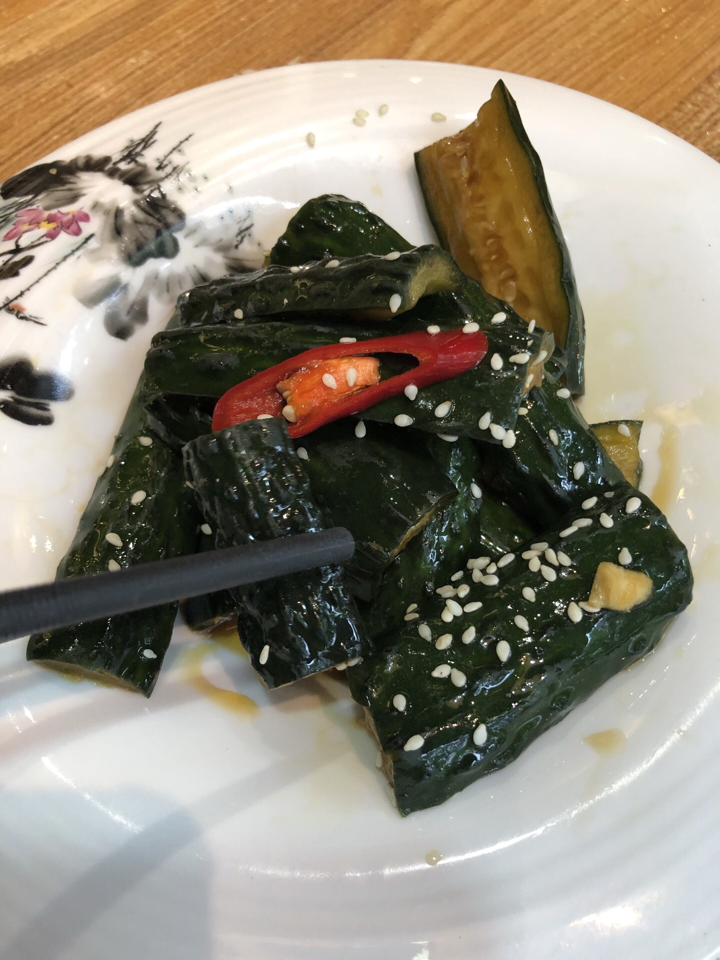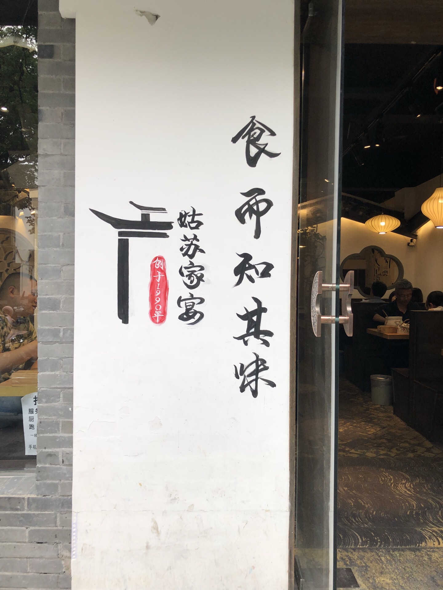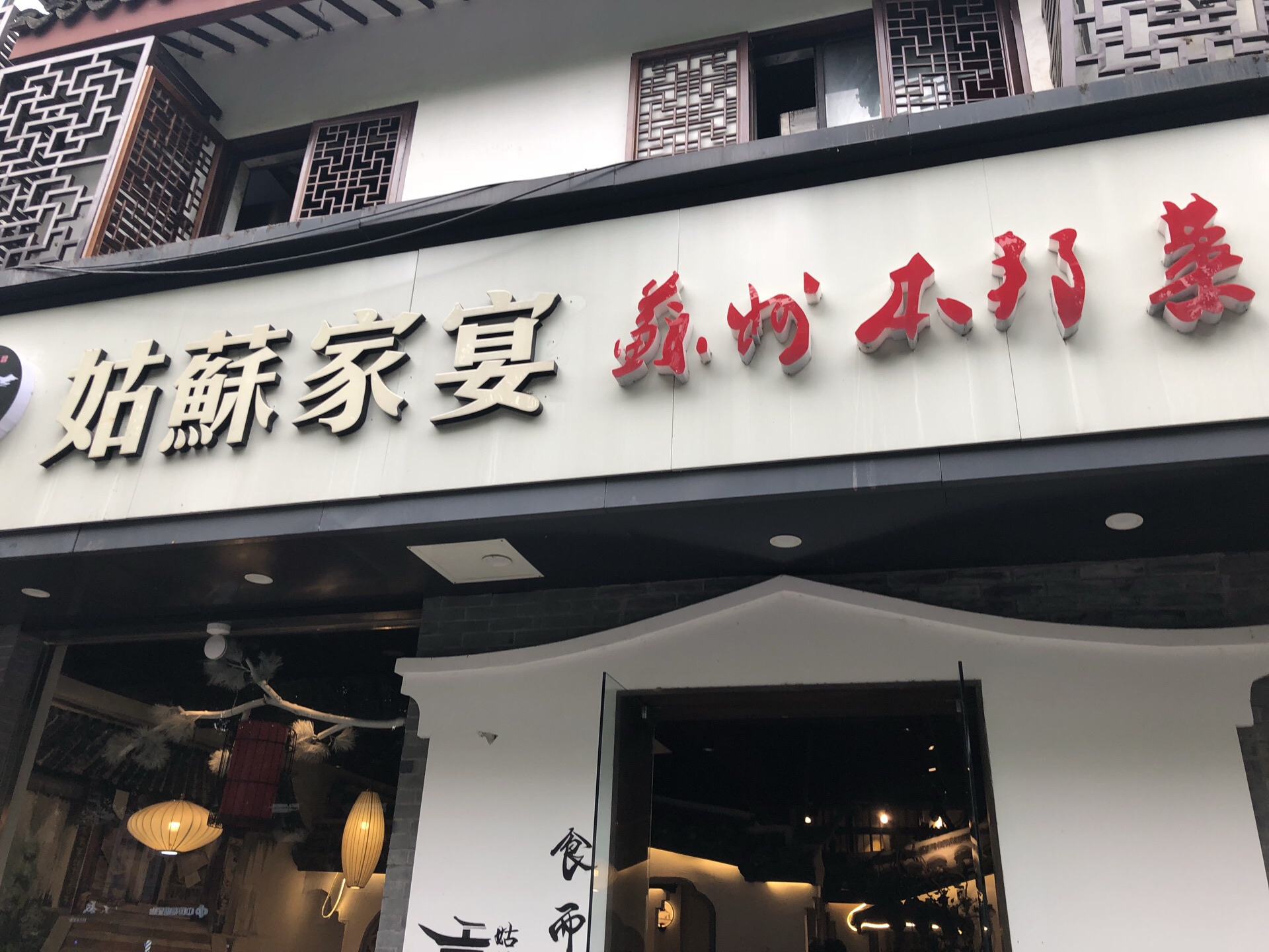 和朋友参观苏州博物馆,出来想吃点继续逛山塘街去,晃到这里,一眼就喜欢上了这家店,食而知其味——姑苏家宴,一看名字就是正宗苏帮菜,虽然不是饭点(不到四点)但已有几桌坐等了,说是厨师正吃饭要稍等会,肚子不饿,就点了点素菜和一汤,酱黄瓜不太好吃,偏甜不脆,土豆丝倒正正好吃,值得下次再来,性价比实在是高。