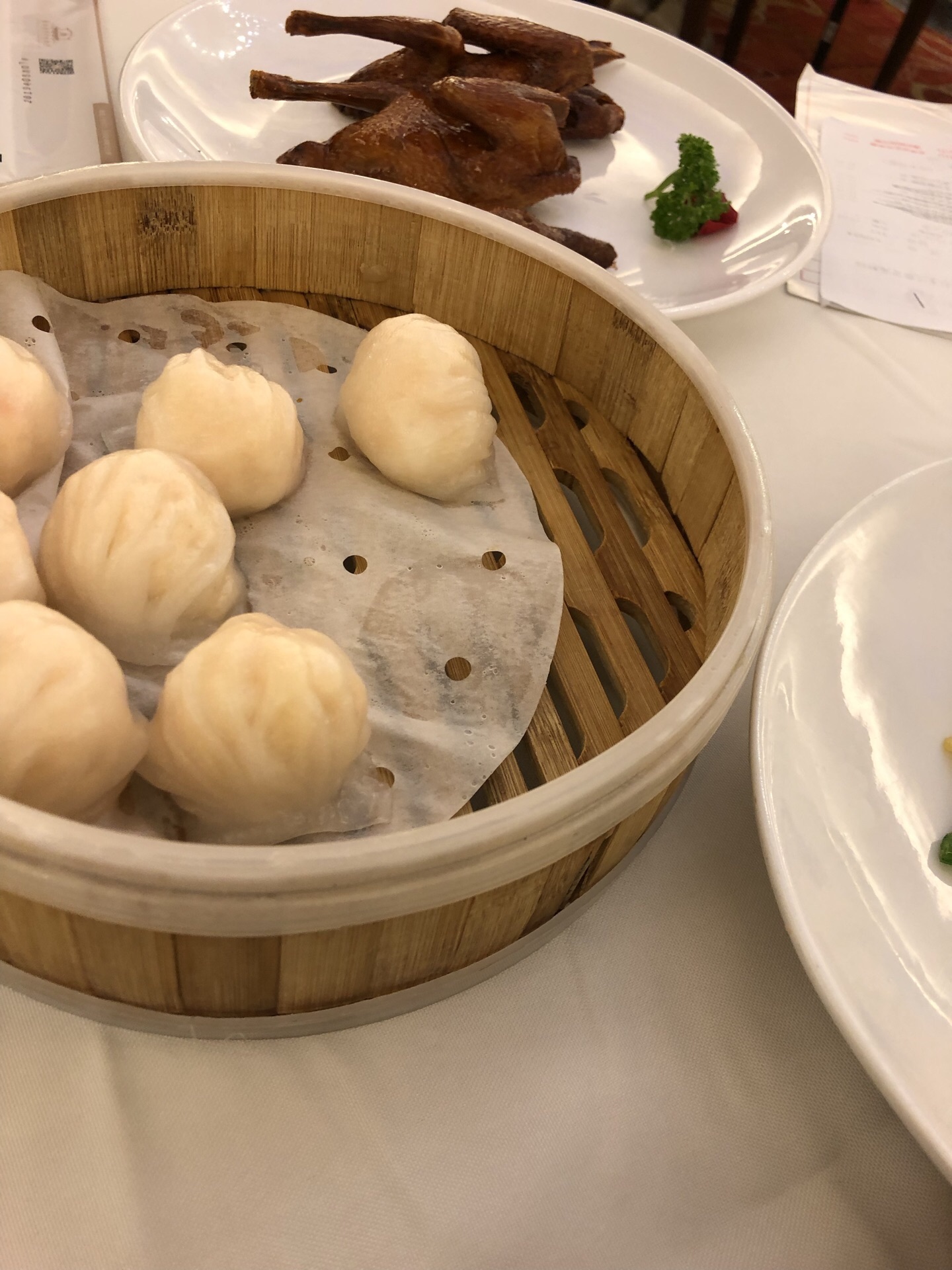虽然全名叫唐宫海鲜坊,但是他们家是粤菜。且是口味偏咸的粤菜。点心什么的中规中矩。海鲜还是很新鲜的虽然全名叫唐宫海鲜坊,但是他们家是粤菜。且是口味偏咸的粤菜。点心什么的中规中矩。海鲜还是很新鲜的。这家位于白玉兰的店,是在二层。大堂位于圆形厅的中间,周围有包厢。
