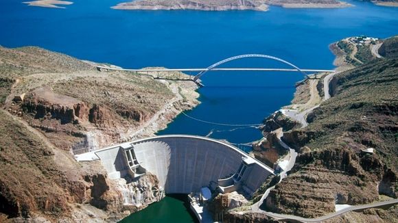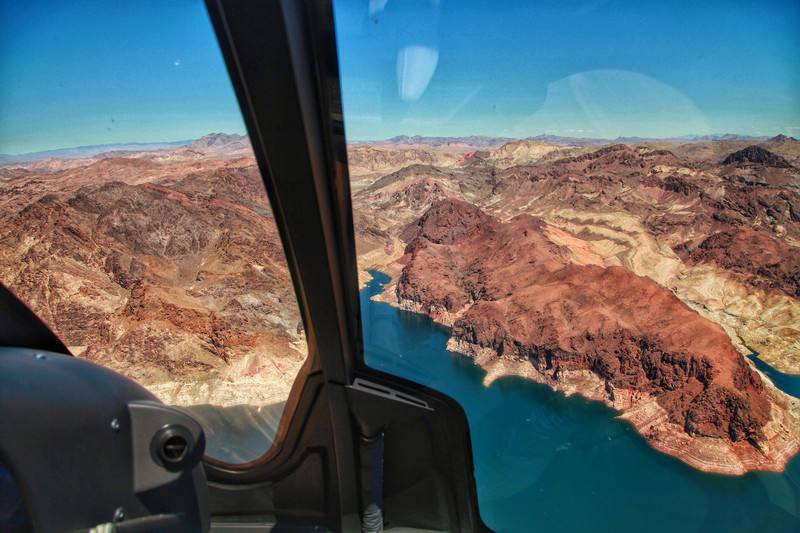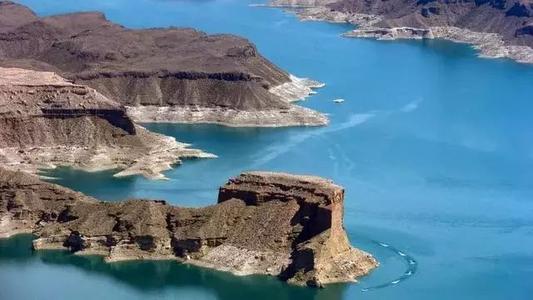 科罗拉多河上游由胡佛大坝拦截形成米德湖,从飞机上观赏,真的很漂亮,兰得今人心醉,周围红色的山体...科罗拉多河上游由胡佛大坝拦截形成米德湖,从飞机上观赏,真的很漂亮,兰得今人心醉,周围红色的山体映衬,色彩纷呈而又雄浑壮美,真有大片的感觉。