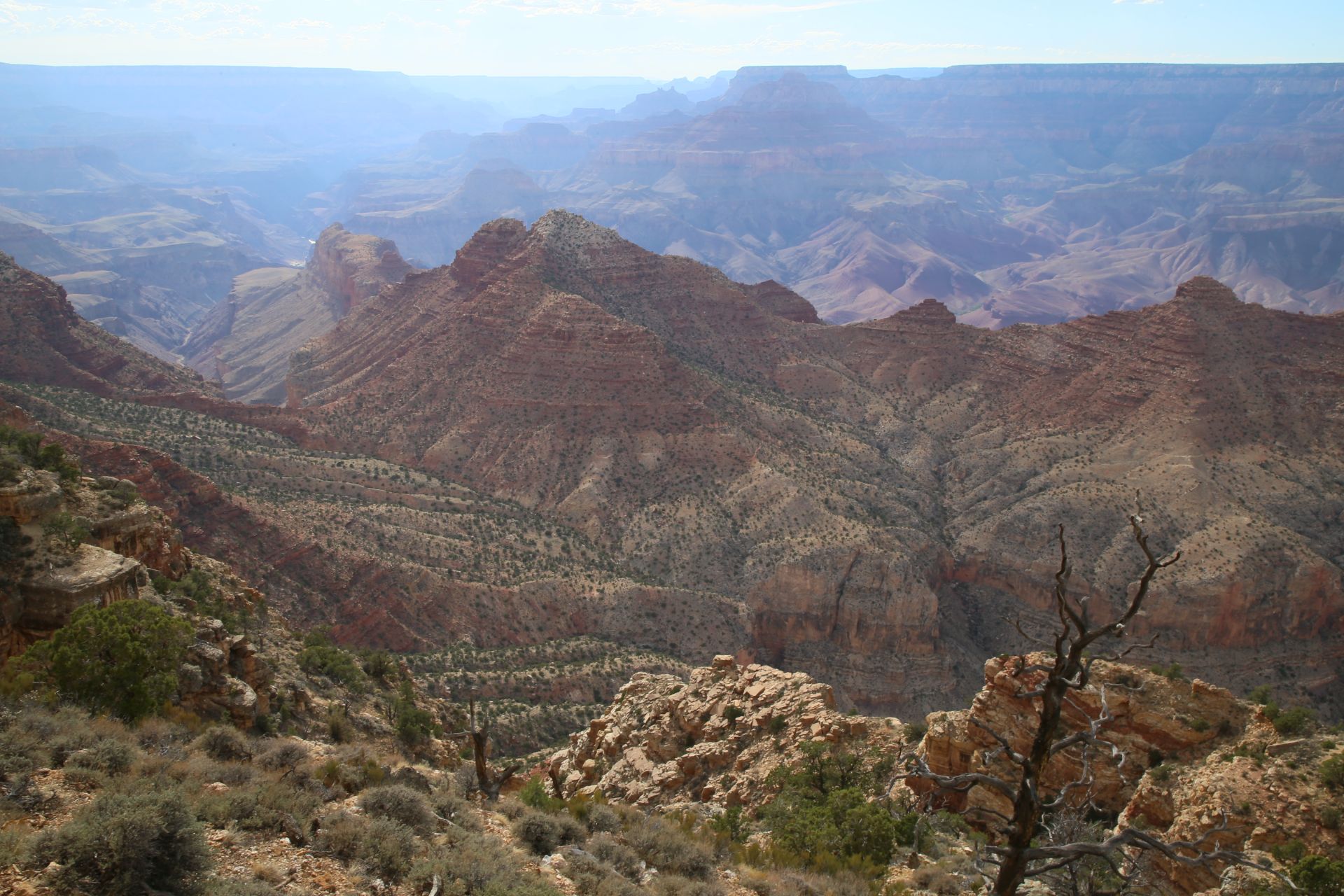 大峡谷的一个个观景台太多了反正就是车子沿途开,然后看到观景台就停。 这个观景台我也不记得是所到的第几个了,号称这里是看日落的好地方,不过我们去的时候是正午,光线实在不怎么好。 只是,看到眼前的景色还是会惊叹。
