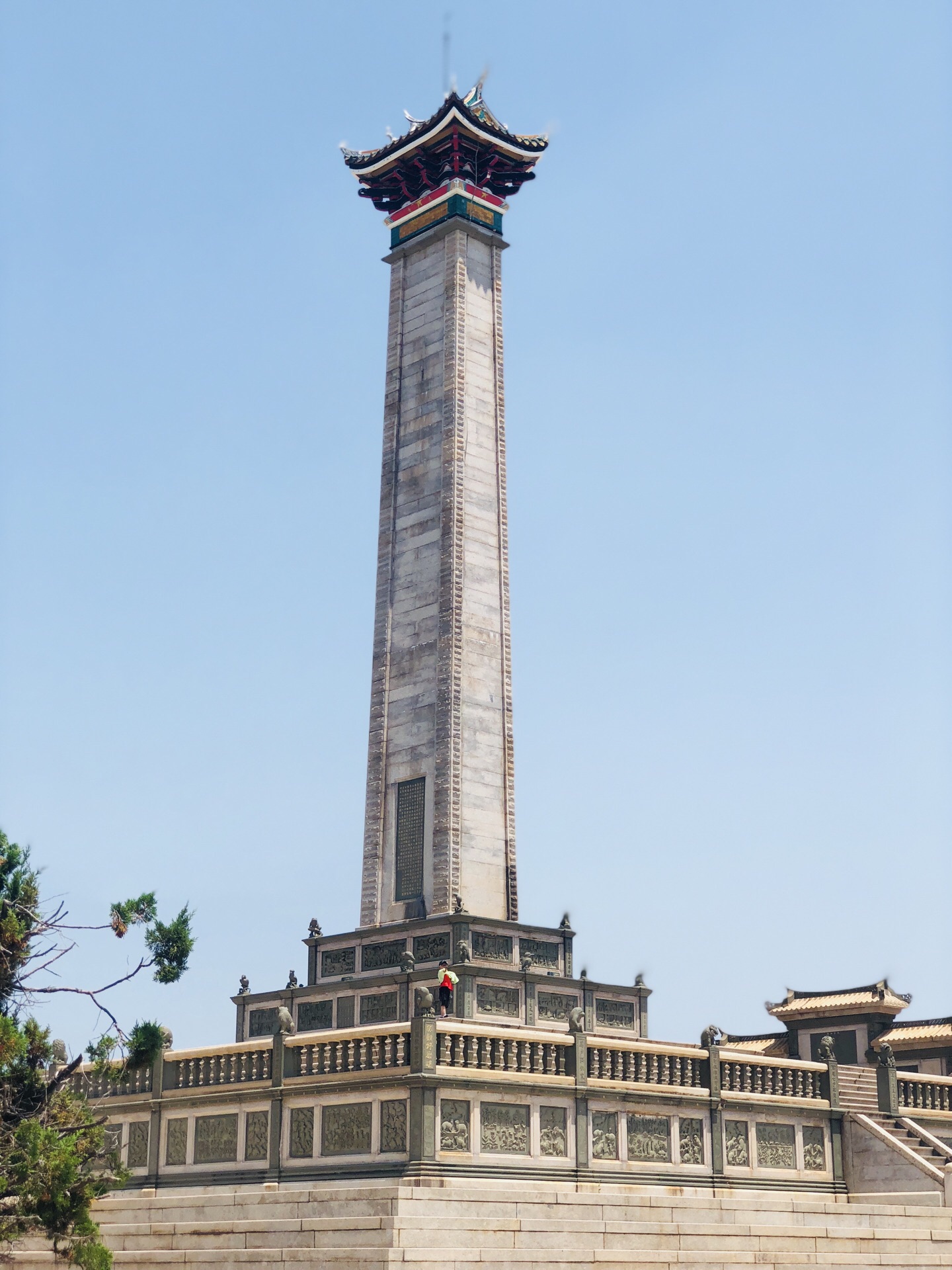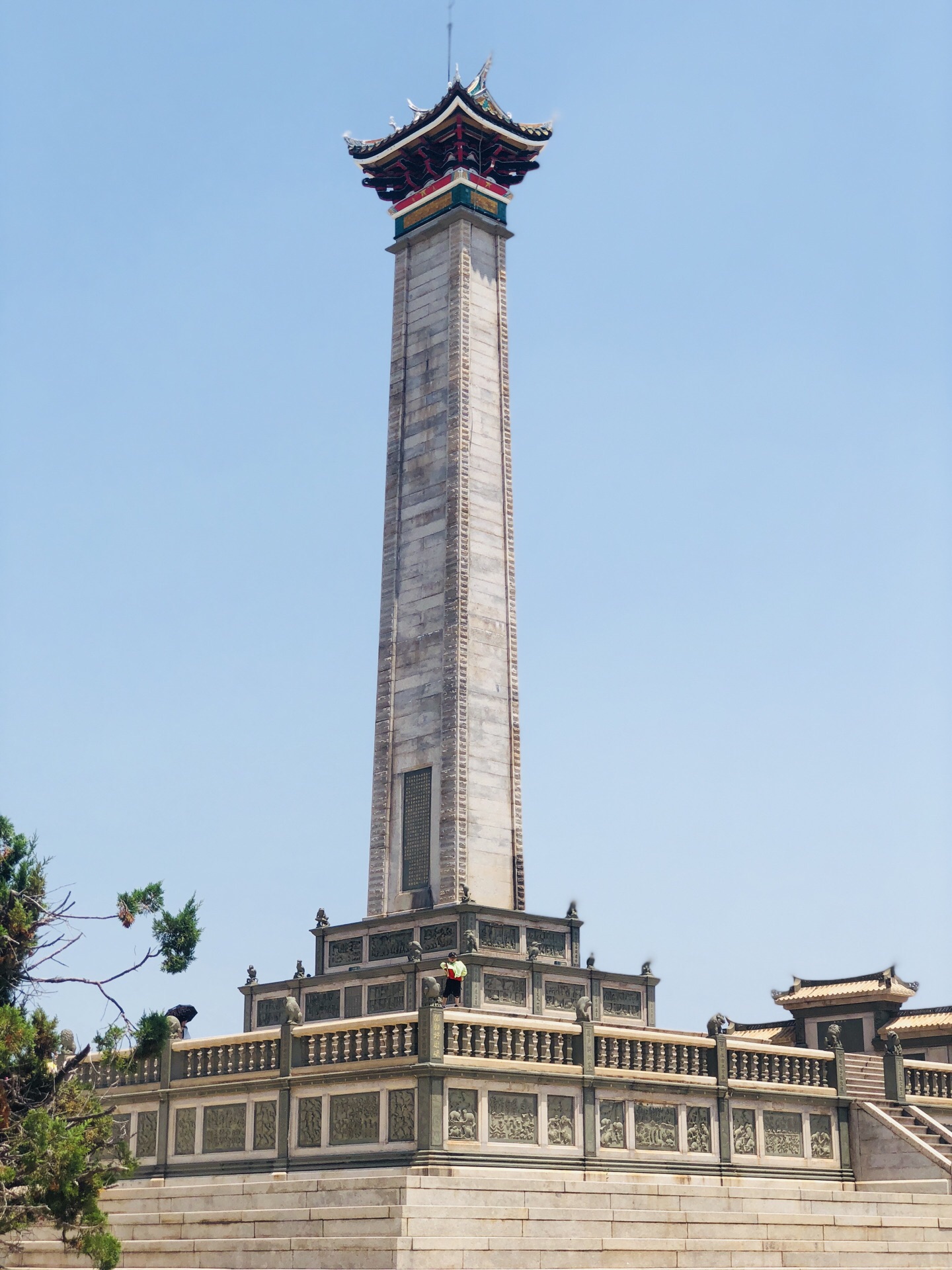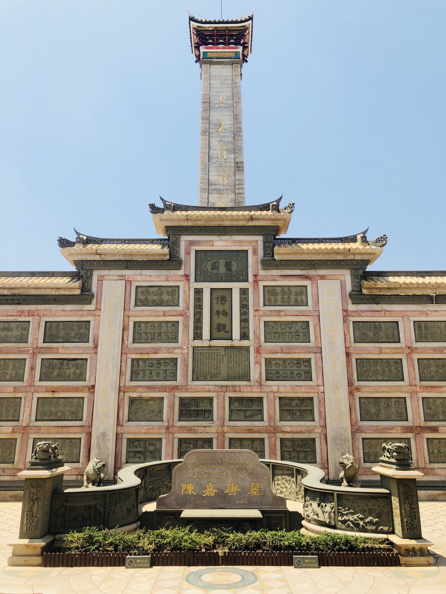 坦白讲,没想到嘉庚先生的墓如此宏伟壮观,想孙先生一代国父,中山陵跟鳌园比起来也只算得各有千秋吧,嘉庚先生为厦门教父之说实锤了。 墓隐于解放碑之后,藏风聚气依山傍水,风水极佳。墓前立拜亭,亭顶镂刻飞天图--到底仍是有乡愁在里面,思想多少会有些局限性。