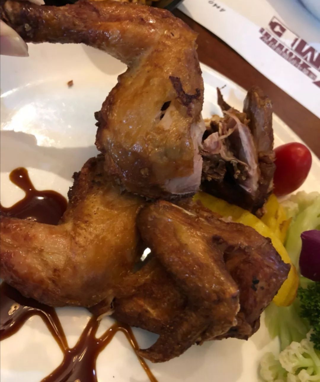 网友2019-06-06烧春鸡搭配薯条,菜花西兰花等非常的不错,刚端上来的烧春鸡,滚烫的鸡皮,口感很不错,外酥里嫩,鸡汁饱满点的菜真的是分量十足,烧春鸡搭配薯条,菜花西兰花等非常的不错,刚端上来的烧春鸡,滚烫的鸡皮,口感很不错,外酥里嫩,鸡汁饱满。松饼味道很不错,奶香味浓郁,搭配水果和冰淇淋好吃。
