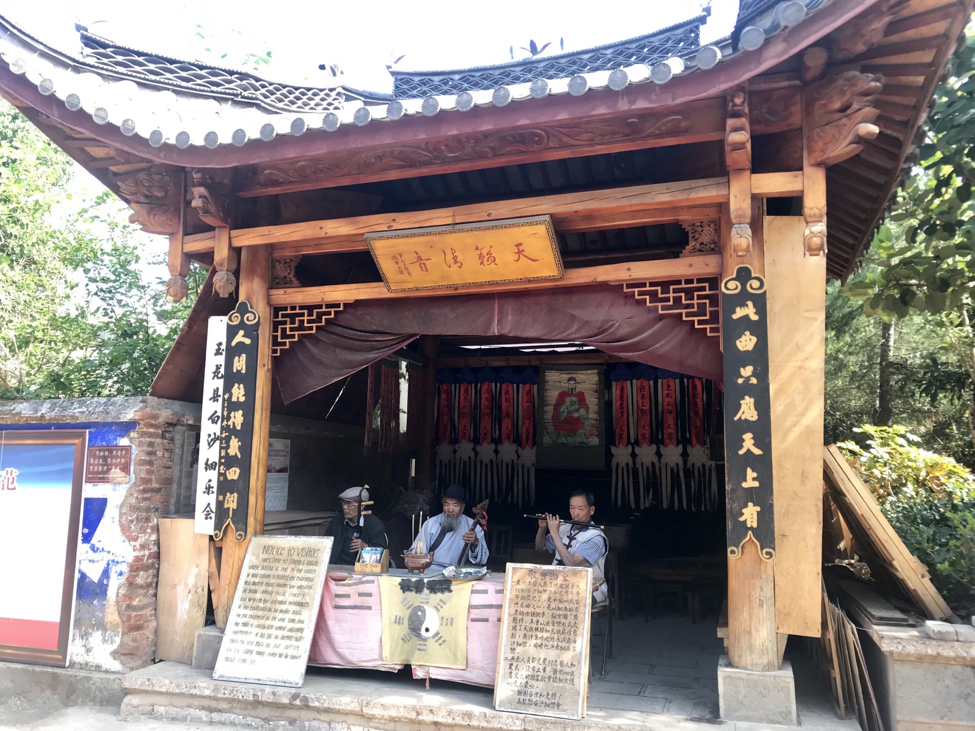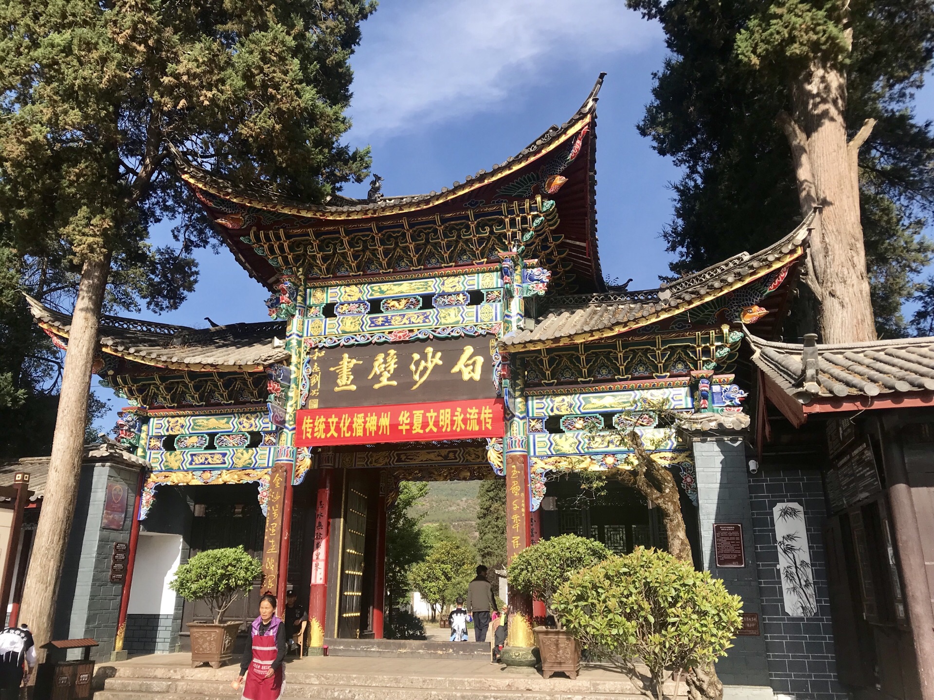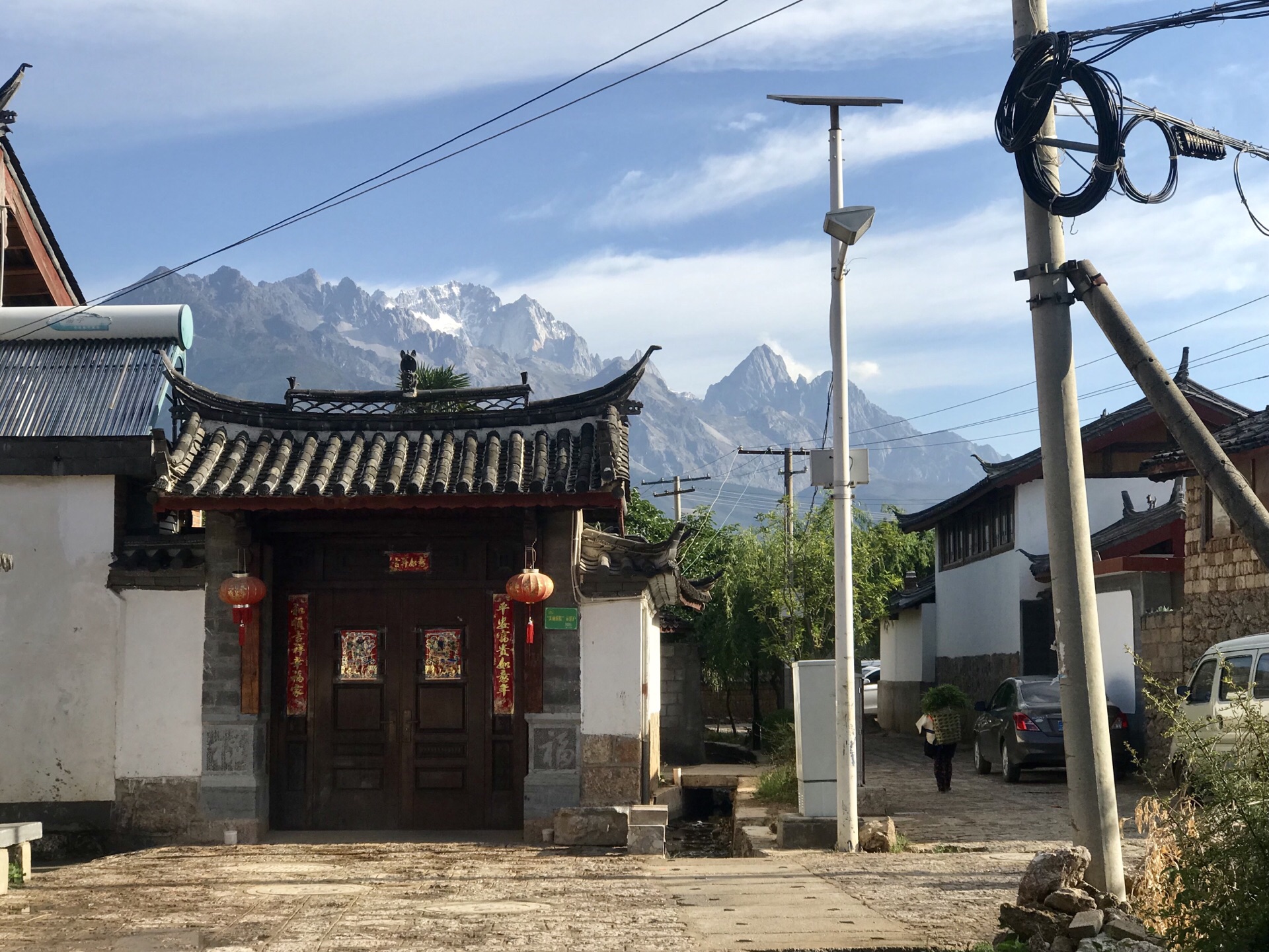 从束河古镇30元租了一辆单车,早上8点多一路骑过来都没有什么人,而且因为时间比较早,一路看到好的风景可以停下来拍拍照,一路都是看着玉龙雪山骑行,风景你可以想象。温度还没有升起来,也比较凉爽不晒。其实和束河古镇的距离没有多远三十多分钟就骑到了。三个古镇白沙古镇的交通最不方便。所以也是原始风貌保持的最好的。不像大研和束河已经非常的商业化。通常旅行团也少。白沙古镇,有个白沙壁画,门票20,但必须同时出具丽江古城的门票,没有买的话还要另付50。所以买过丽江古城门票的小伙伴一定要保留好,包括茶马古道博物馆,进去的时候都要出示丽江古城的门票。