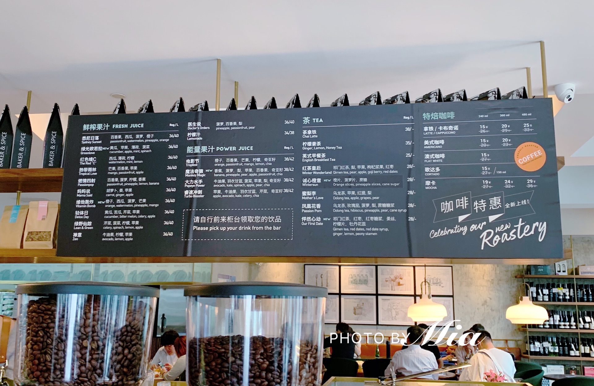 和小伙伴相约,想找个空间大点人又不太多的地方喝下午茶,Baker&spice真是相当合适。 空位挺多,拼一下桌,我们6大1小顺利入座,空间真是绰绰有余。 大家各点了饮料和蛋糕,量真的是相当的小,味道也极其普通,性价比真的有点差。 好在有舒适的空间,这比较重要。