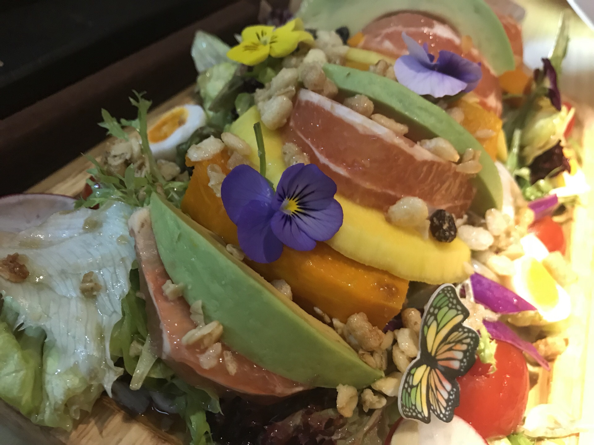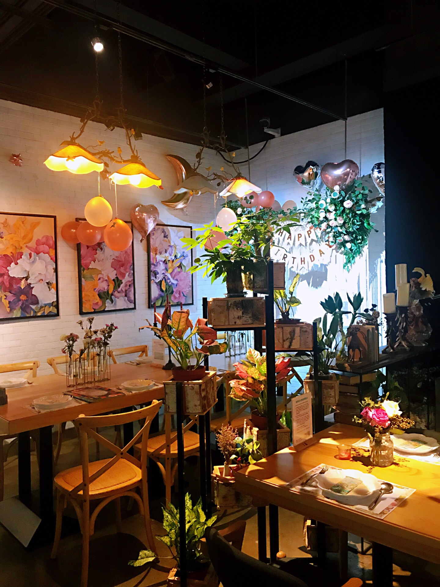 在珠江新城名门大厦上班的朋友中午约饭,选了楼下的苏子·花艺西厨。这家西餐厅位于花城大道2号名门大厦首层,在地铁五羊邨站B出口对面,五羊新城行人天桥的桥脚,地理位置不错,交通方便。 这家既是西餐厅,又是插花店,可以满足人们的多种需求。餐厅装修得像花之海,是珠江新城CBD中的世外桃源。 中午的顾客不少,有三五同事或朋友小聚;或情人利用中午抓紧时间谈情说爱;甚至还有举办PARTY。 香煎牛板筋 煎得正好,七成熟,肉质鲜嫩,略带点粉红色。不放任何酱汁,撒点盐更加原汁原味。 水果沙拉 有橙子、芒果、火龙果、甜玉米等,清爽健康。 熏肠薄脆披萨 披萨底很薄,很酥脆,带有辣味的熏肠味道很特别。 服务员小哥哥、小姐姐态度超好,服务细心周到。
