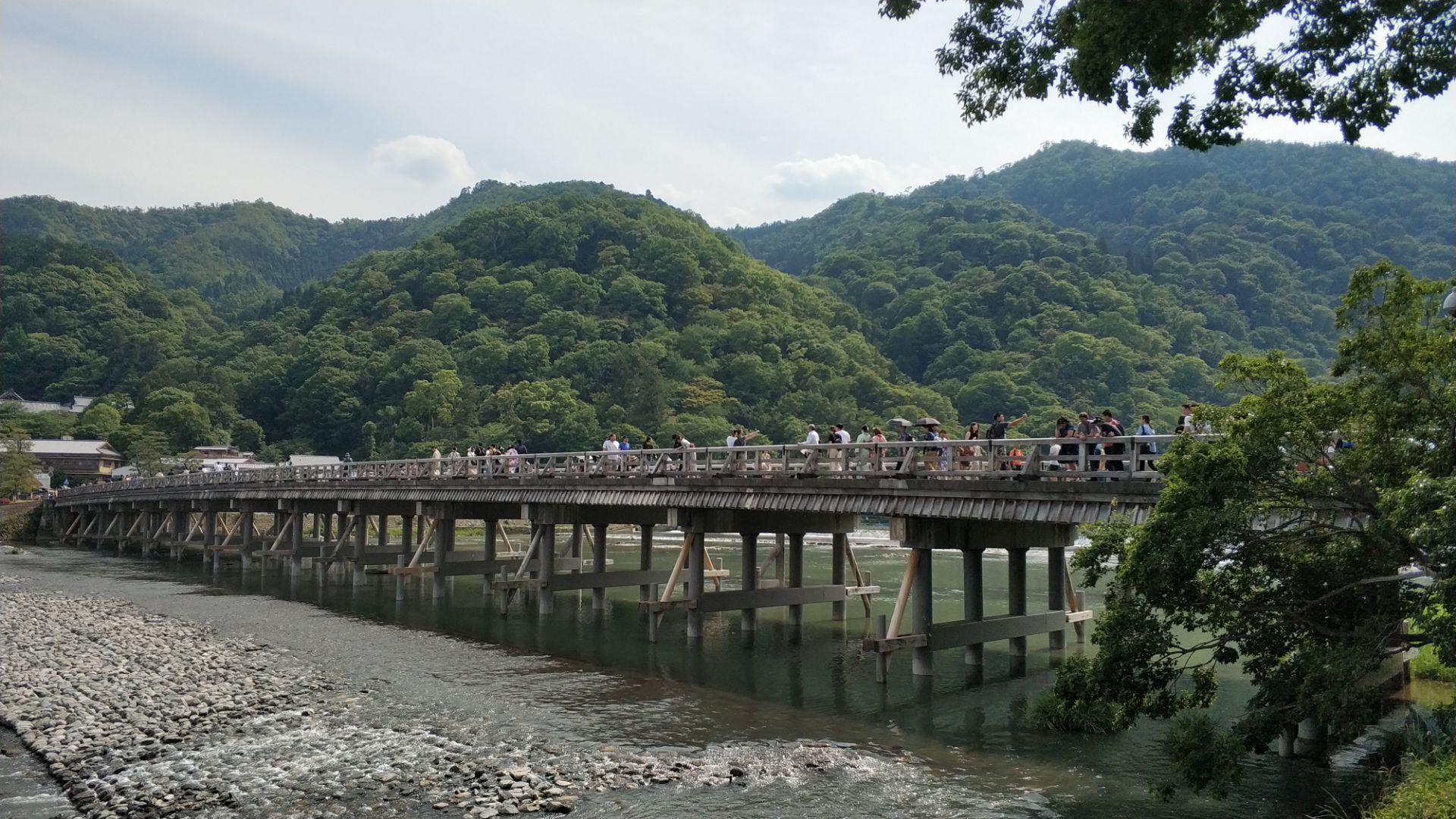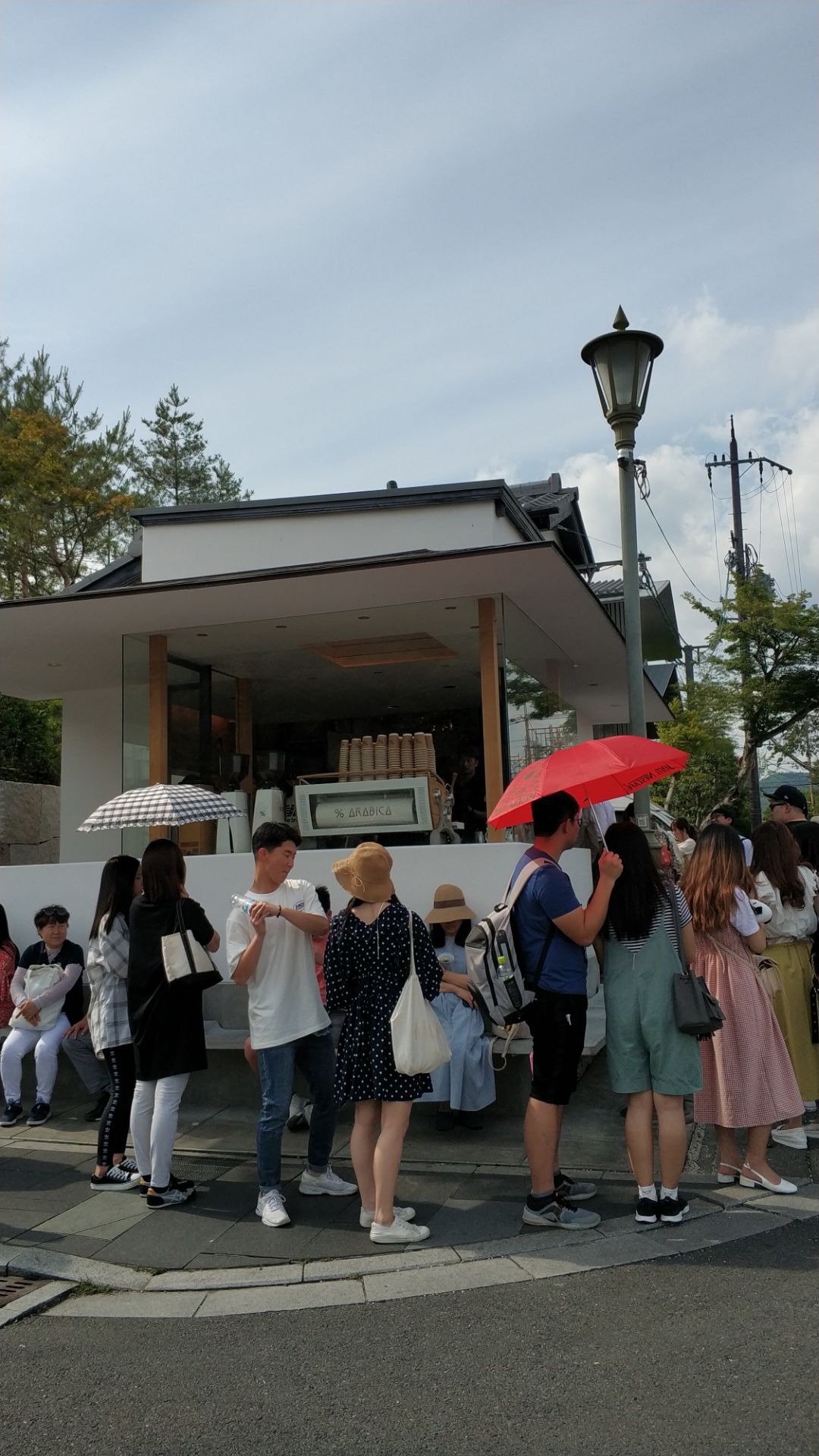 导游介绍的网红咖啡店,沿河经过渡月桥往前走一小段路的路边,很好找,直接看很多人排队的地方就是了。 店堂超级小,基本没有堂坐的位置,据说堂吃是要加费的。服务生正如导游介绍的,一色的俊男靓女,很养眼喔。咖啡还是蛮香浓的,拿了一杯漫步河边,对着青山绿水,品味惬意人生。