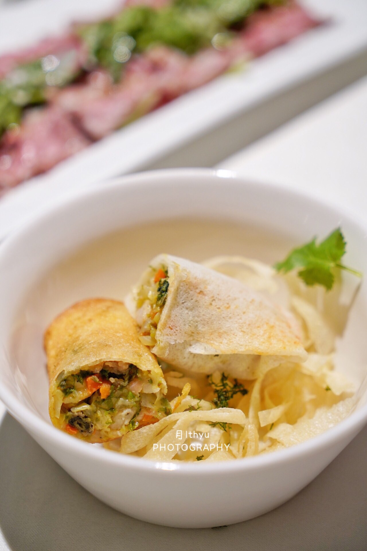 有着早餐爸爸之称的黑明,不但每天为娃准备早餐,还开了一间黑明餐厅。餐厅不管工作日、周末都人气火爆,来晚点就需要等位。 到了夏日,黑明这里贴心的准备了适合双人享用的夏日套餐。 香椿鹅肝即位的菜品,不说还真不知道是鹅肝,像三角蛋糕的造型有种小惊艳,这款鹅肝不会很软绵反而有种扎实感,带着香椿的味道,有人喜欢,有人不爱。 低温慢烤牛肉,分量不小带着淡淡的粉红色,包裹着生菜一起入口,非常鲜美。 鸡汤氽贵妃蚌,新鲜的贵妃蚌放在汤碗中,加入烧热的鸡汤,稍等片刻食用就非常鲜美。 角瓜多宝鱼,做法独特,偏爱角瓜多过鱼。 还有着卤豆干、厦门薄饼都还不错。最后来上一份手工的酸奶解去油腻完美。