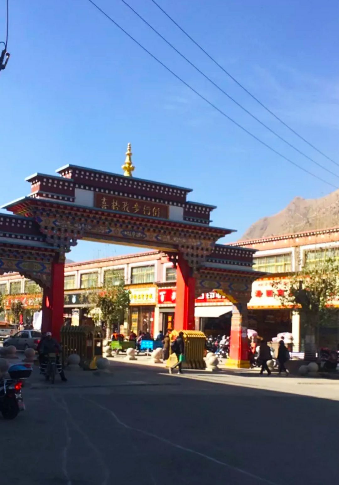 日喀则市中心的“喜格孜步行街”,在当地很有名气的,相当于商贸一条街,就在扎寺附近。 路口是一个藏式风格的大牌坊,说是步行街,其实小车都可以进进出出,毕竟这边都不是人流密集之地。 头顶着日头太晒了,只能稍微逛了一下,开店的主要是卖一些配件、藏饰、虫草、餐馆有几家,没啥小吃。