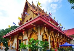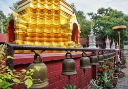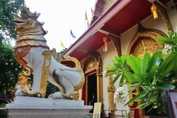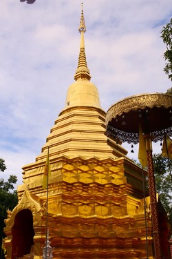 从塔佩门进入古城不远处,就是wat pan on。 在寺庙周围都是一些小商贩,有售卖衣服的,有售卖食品的,有售卖小商品的,各式各样的东西。我跟老婆在这里还买了来清迈第一件特色服饰,红色的小上衣,穿着很舒服,样式也有些泰式风格。 在寺庙里,左侧有一个高僧的雕像,当时第一眼以为是个真人在那坐着,定睛一看原来是雕像,真是惟妙惟肖的。 俩人也是虔诚的进行跪拜,果果还一本正经的双手高抬磕头祈祷 殿外是金光灿灿的佛塔,在太阳的映衬下,闪闪发光。 清迈和曼谷的寺庙都太多了,感觉天天看有些审美疲劳,虽然每个寺庙都有自己的特色吧,但是总觉得看腻了哈哈哈。