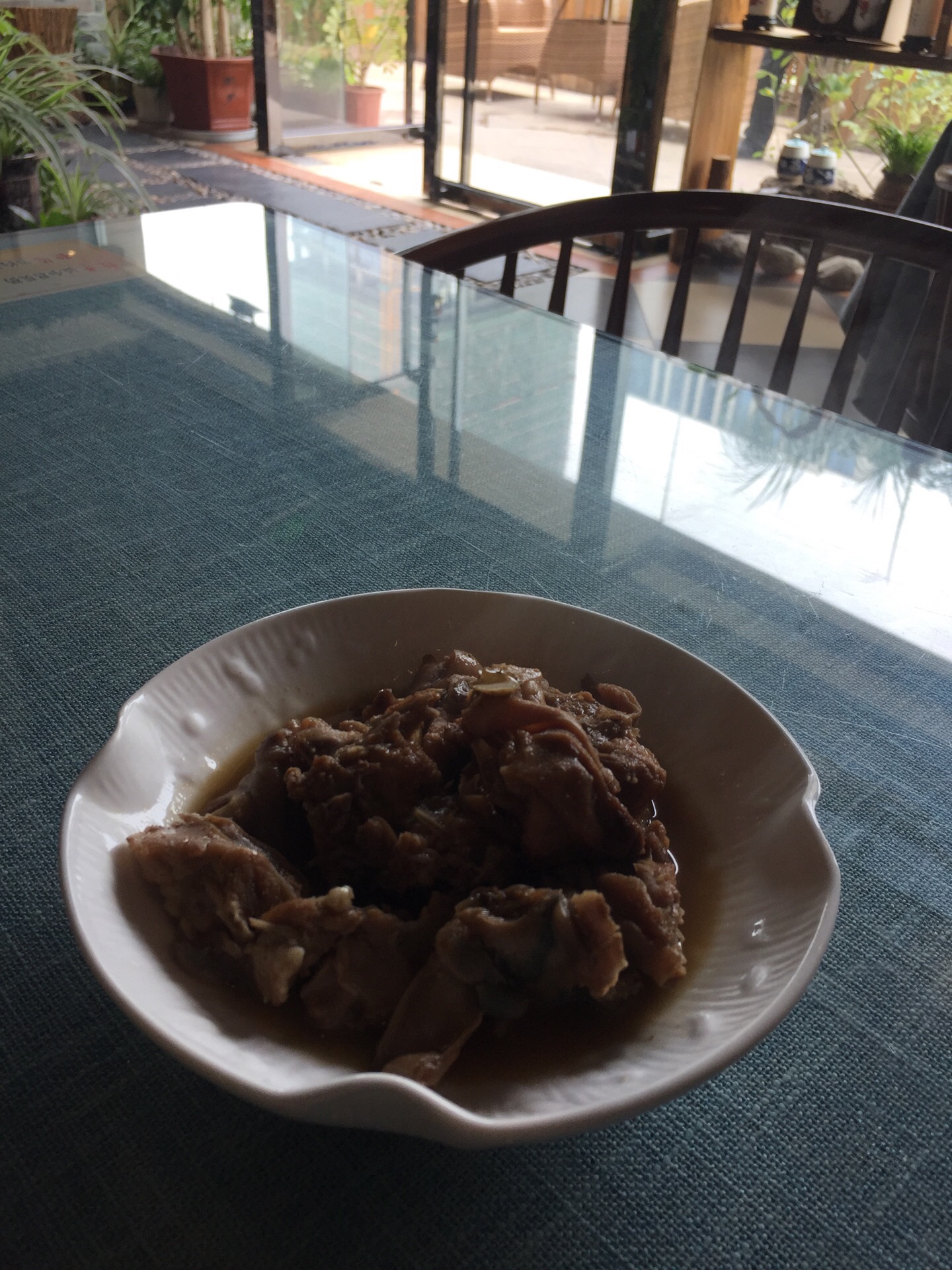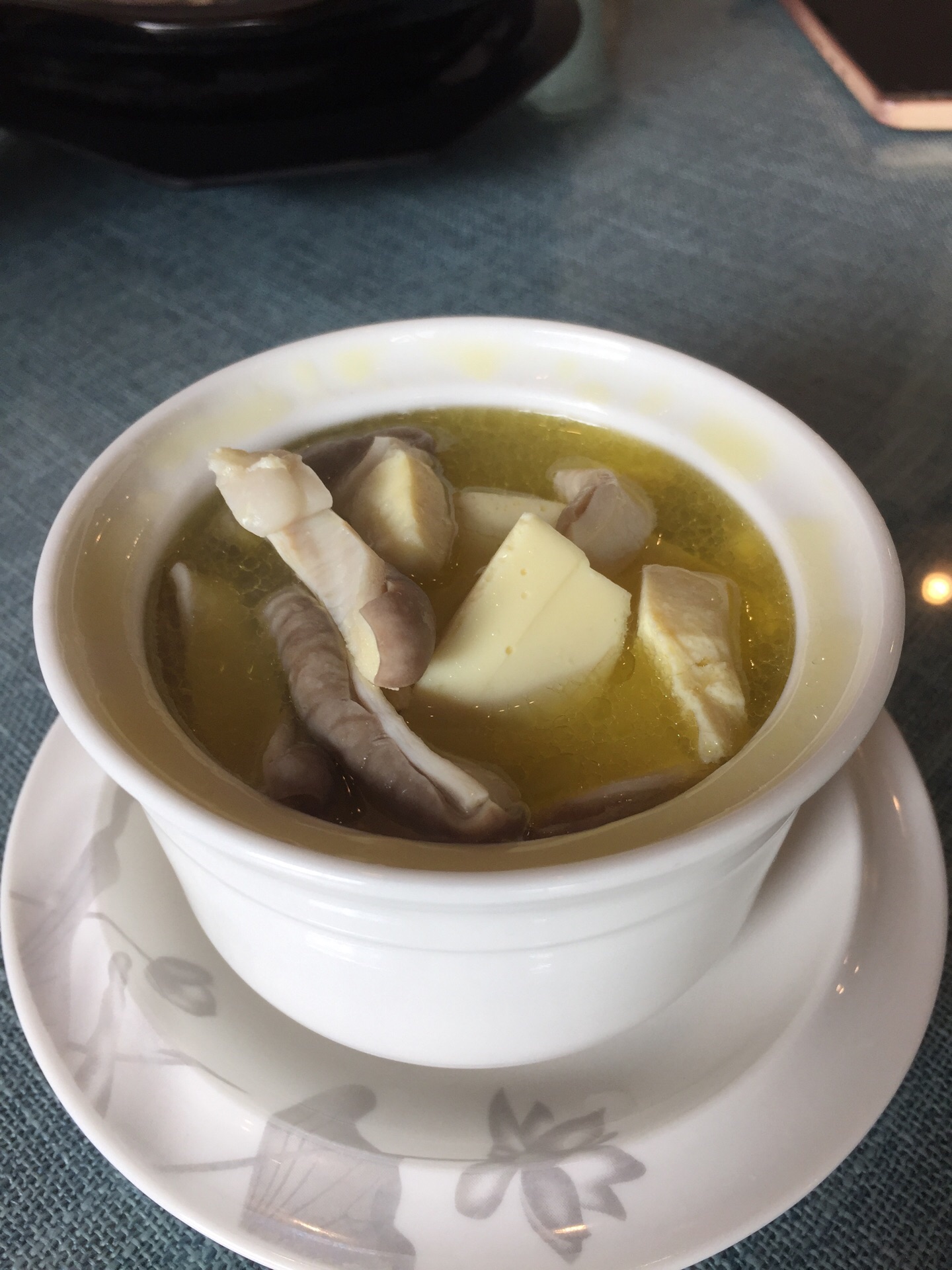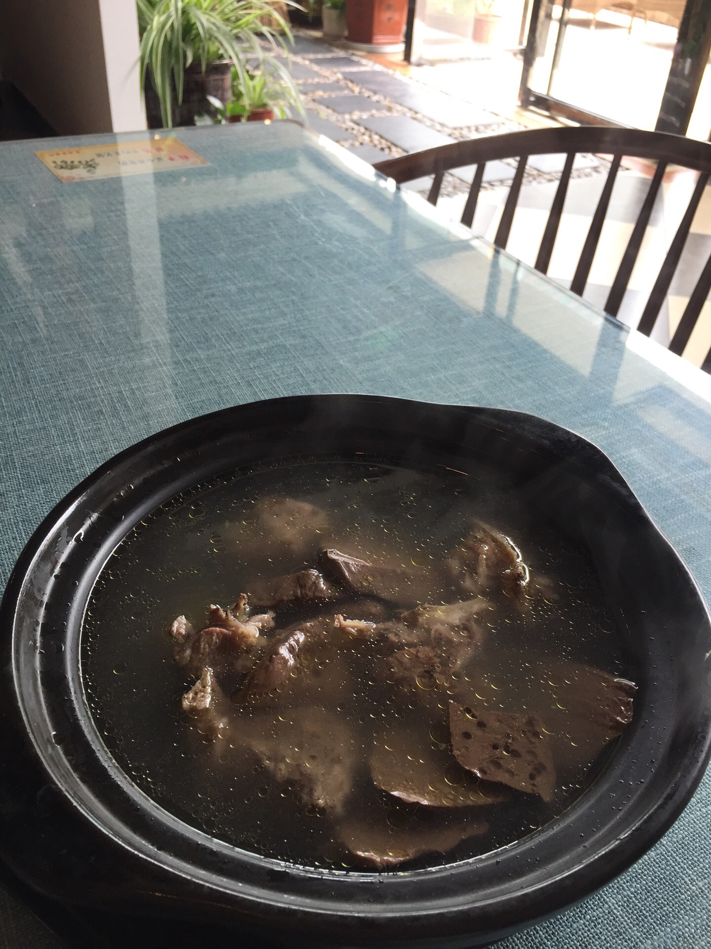 茶油香前埔店位于赤坡山宝龙一城对面,环境很不错,从一楼到二楼,楼梯上摆满了盆栽,二楼门口还有露天座椅可观景,内有雅座,楼上也有包厢。它家菜品都是用茶油制作的,已滋补健康为主。老鸭汤汤头很甜,吃得出不是饲料鸭。茶油焖黑兔,没有膻味,但是味道一般。茶油猪肚蛋看起来以为很油,不过吃起来是茶油的甘甜味,蛋的部分有点硬,不够细滑。喜欢它家提供的免费米汤,解油腻又养胃。