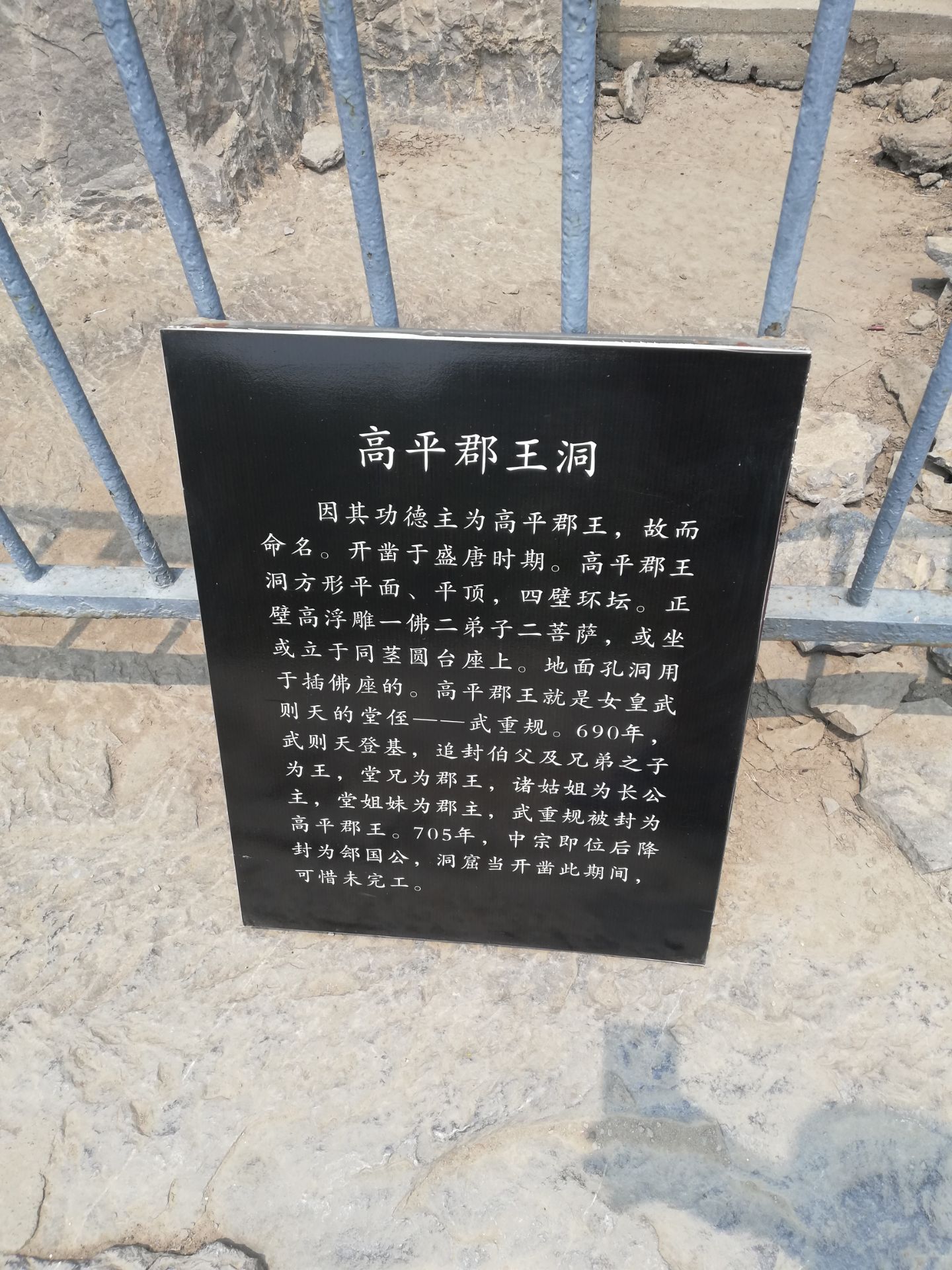 要想参观高平郡王洞,可真的不是一件容易的事情。因为需要爬上大约200~300个台阶。因为它位于东山石窟,很多人都会选择性的放弃。本着对艺术价值的追求,我还是顶着炎热的太阳爬了上来。上来之后整个石窟非常安静,但是破损的也已经比较严。高平郡王作为武则天的一个堂侄,也在这里默默的修起了一个石窟。