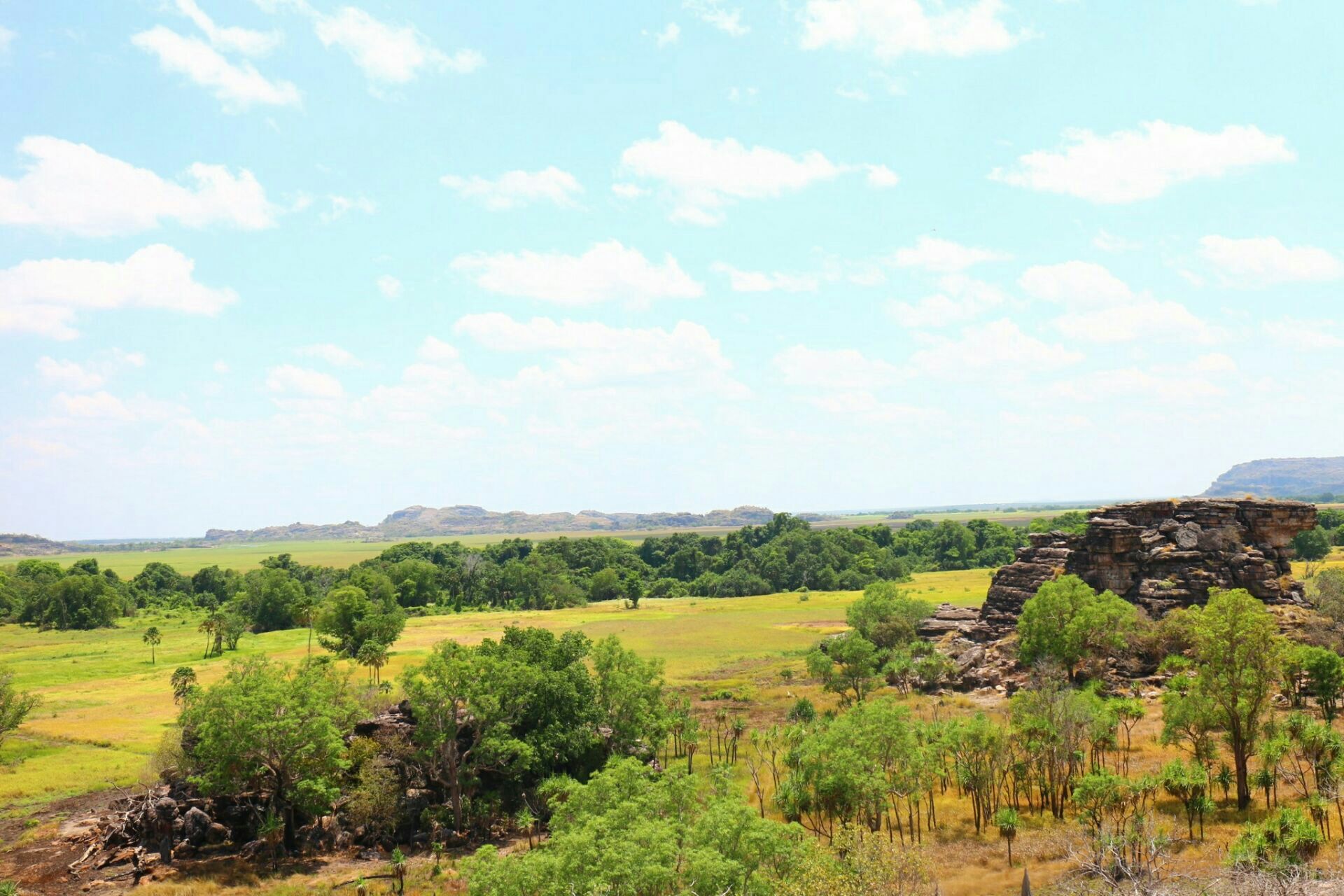 Ubirr是卡卡都国家公园里一处岩石景区,在一片旷野上,突出的几块巨大的岩石,被千年的风沙雕琢成各式各样的样子,这里也发现了许多古人的遗址,在古代这里应该是一片山区,但现在已经被风沙侵蚀的差不多了,这里也是卡卡度的中心地带,很值得来游览一番。