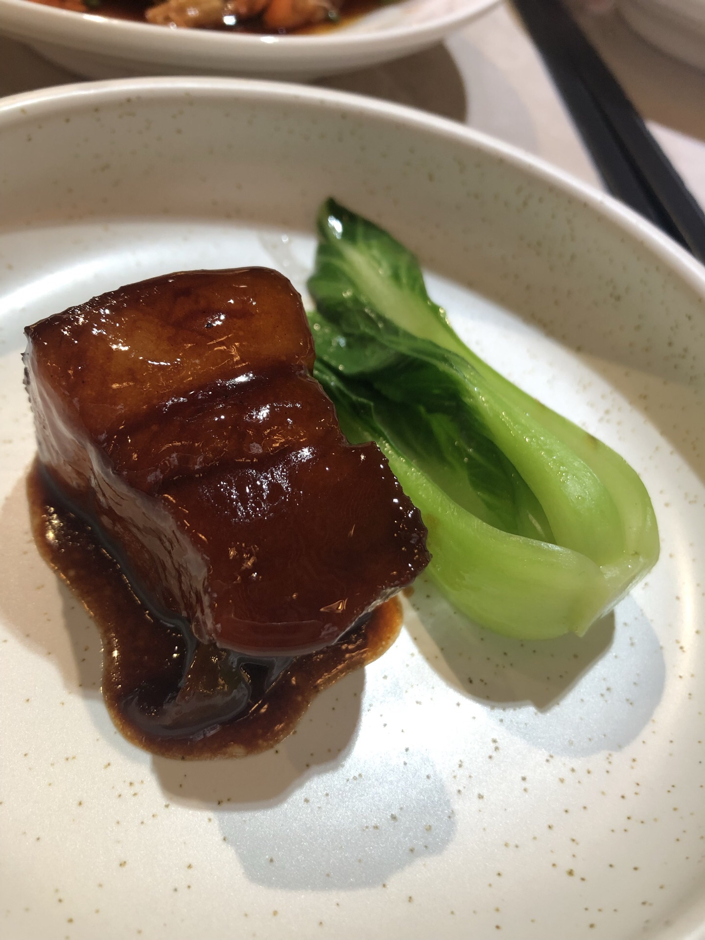长寿路新开酒店三楼的一家餐厅,装修风格时尚大方。一直想来试试,看到有团购,菜还可以,果断下单。服务员热情让座,说明参加团购活动,与88折优惠不同享。团购中酱鸭推荐,不腥,鸭肉嫩,入味。雪菜黄鱼,鱼是新鲜的鱼,入口即化,雪菜咸鲜口。我们另外点了两头乌红烧肉,量小不够分的,家人说非常不错。鸡毛菜腐皮全部抢光。