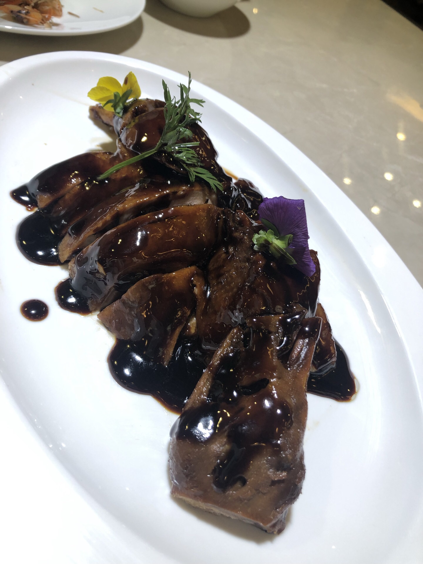 团购中酱鸭推荐,不腥,鸭肉嫩,入味。我们另外点了两头乌红烧肉,量小不够分的,家人说非常不错