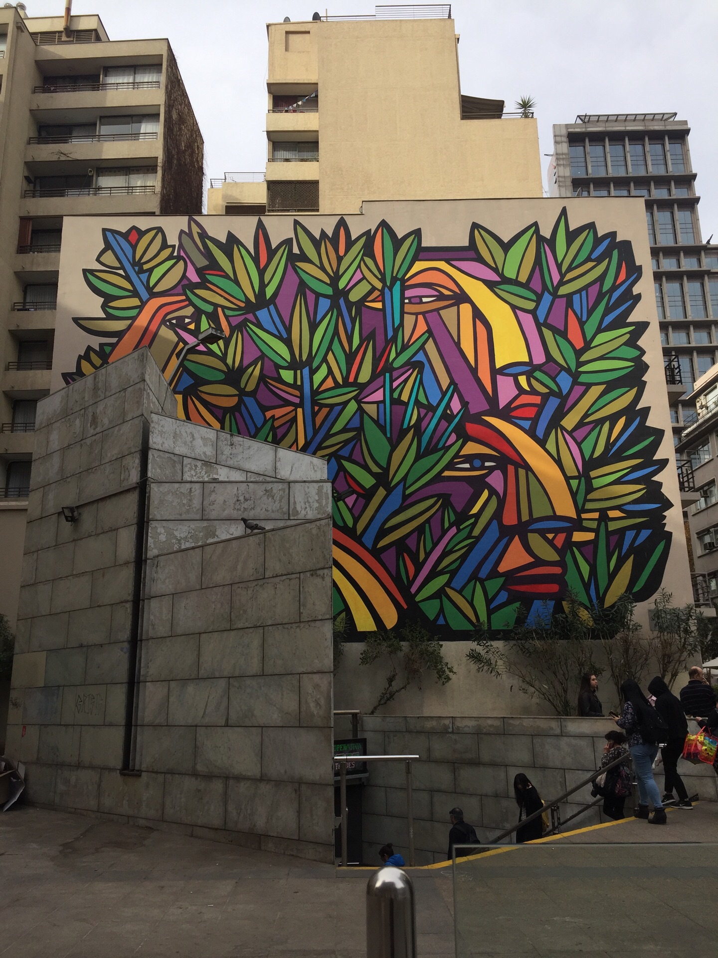 这里位于圣地亚哥都市圈的市中心,有很多的各式的餐厅,有好看的壁画,可能是因为附近就有一个艺术馆的原因吧。这里是游客来到圣地亚哥必游览的地方