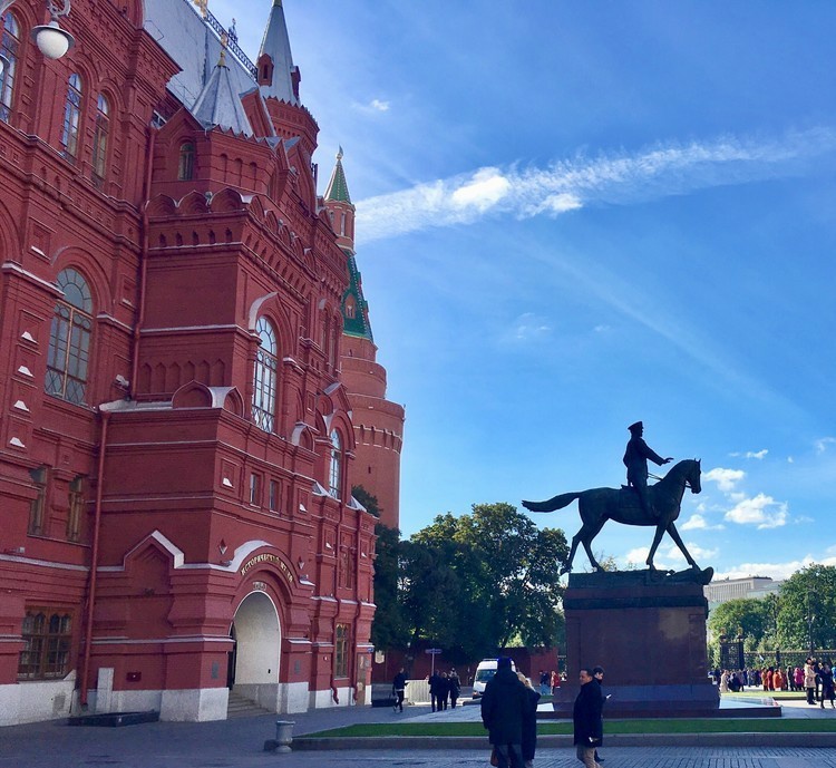 朱可夫元帅的雕像位于红场一个出口处,雕像上面的朱可夫身姿挺拔,骑在一匹骏马的身上,面向着他的祖...朱可夫元帅的雕像位于红场一个出口处,雕像上面的朱可夫身姿挺拔,骑在一匹骏马的身上,面向着他的祖国,朱可夫是俄罗斯的英雄。
