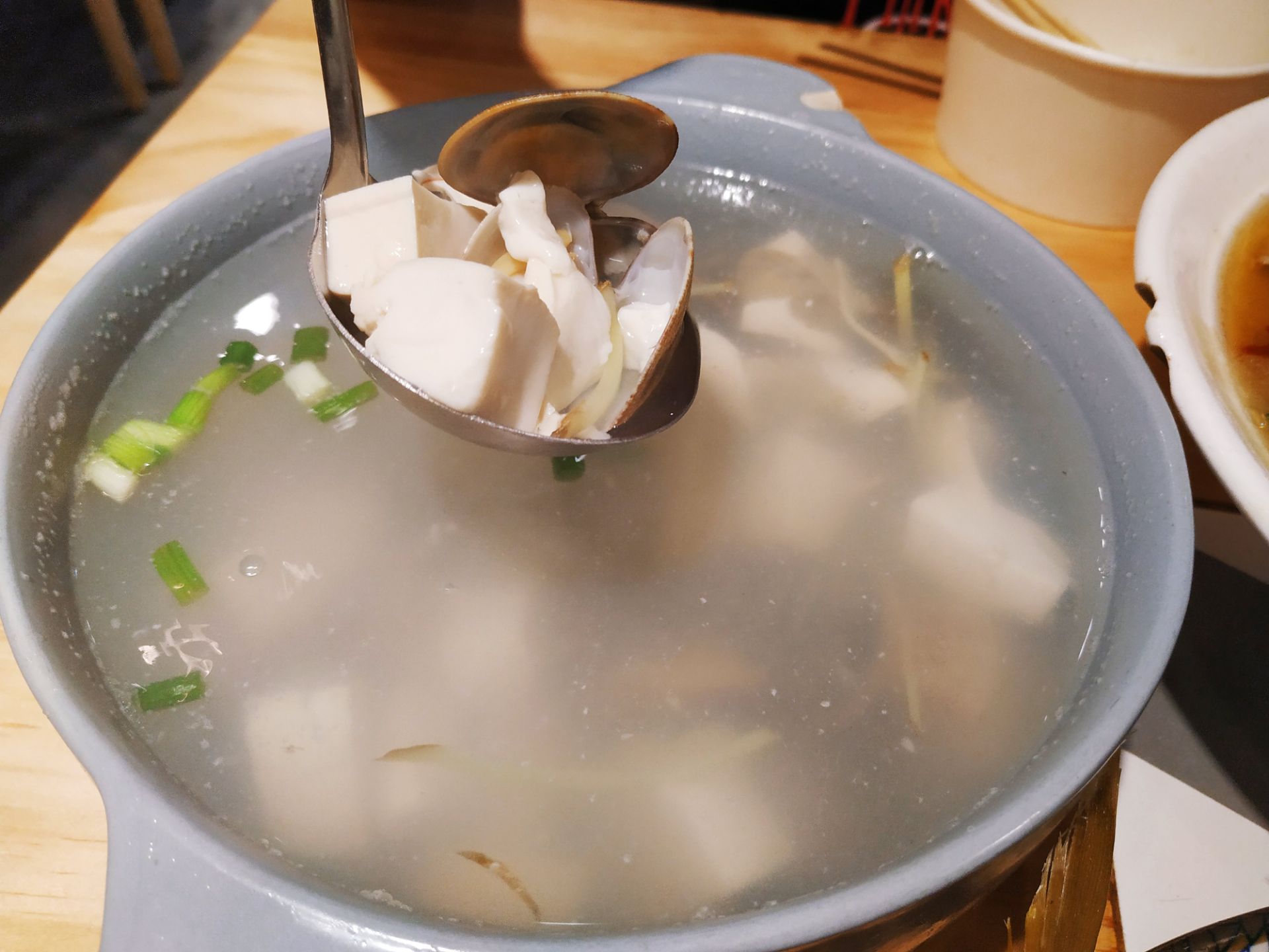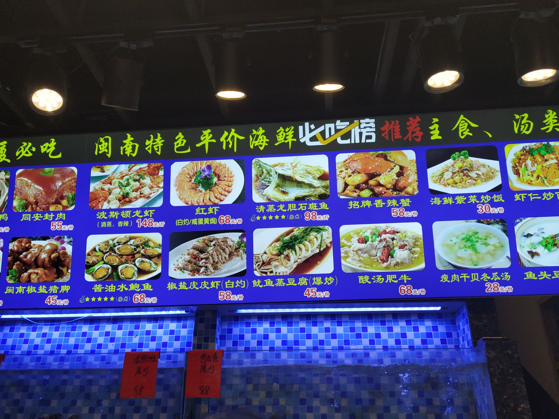 带朋友过来曾厝垵,提前买了这个团购,感觉在景区这个价格还不错,而且菜色也比较丰富。 位置差不多在闹市中间,门口的街很热闹,注意不要错过了。进门就有人接待,服务态度还不错。生意很好上菜就没那么快,不过味道还可以,尤其是酸汤田鸡,很酸爽,田鸡也蛮新鲜的,配菜很多;空心菜也炒的不错;爆炒小鲜肉就一般了,比较柴;还有汤里的豆腐也不太爱。米饭吃完可以再打~