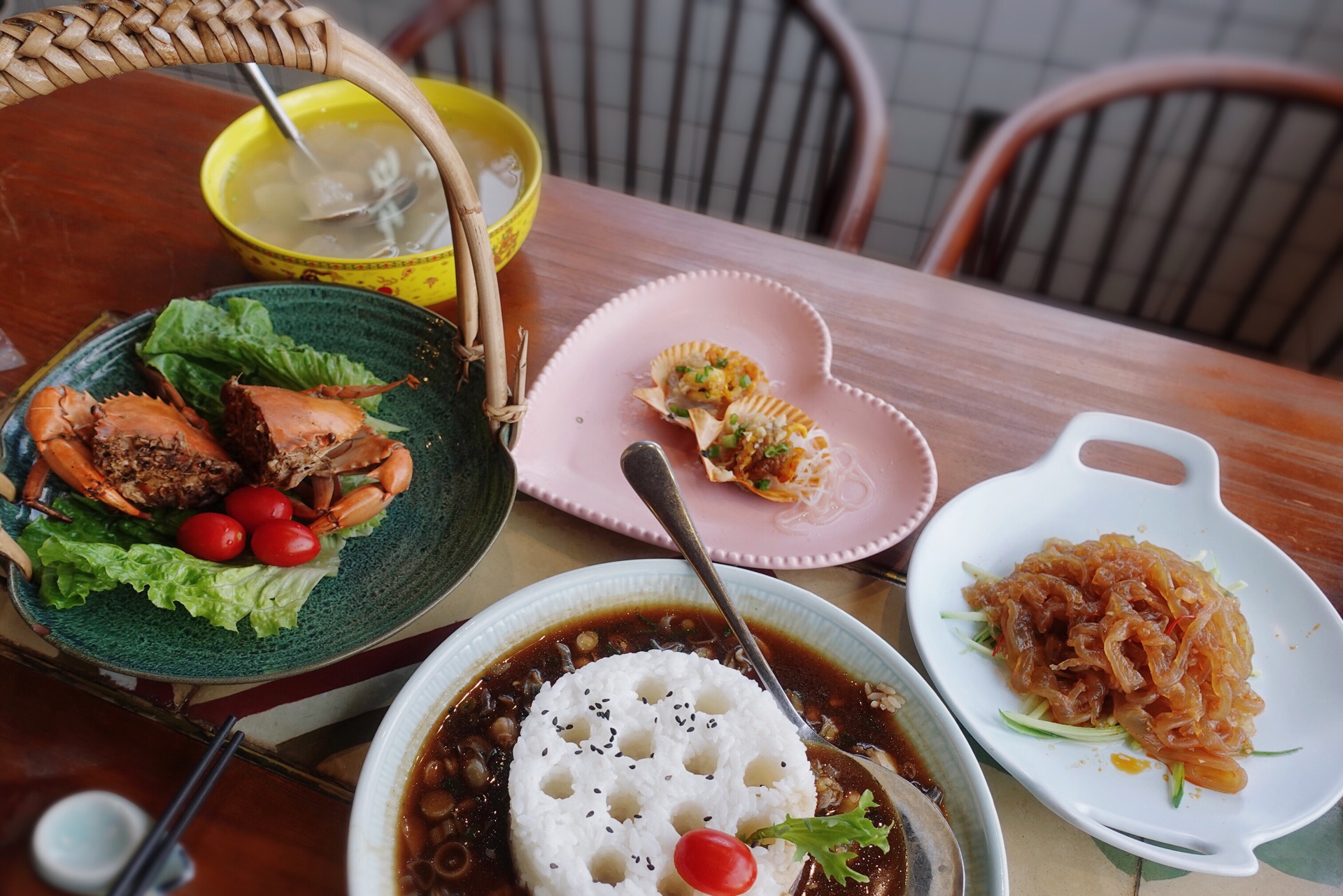 黄家花园|鼓浪屿老别墅最为知名的一个 黄家花园餐厅则是黄家花园的一部分 地理位置很棒 一楼专为团餐使用 旋转楼梯直上二楼用餐 可以眺望大海 景致一流 菜品味道比较中规中矩 造型摆盘还不错 蜂窝拌饭的米饭太粘 所以没怎么吃 膏蟹很大一只 满满的膏 海蜇也爽脆 很尴尬的是跟着导航走 只找到了餐厅后门 用餐完从正门出 才发现正门挺隐蔽的 正门从菽庄花园游客中心旁的石头立牌 黄家花园处进入