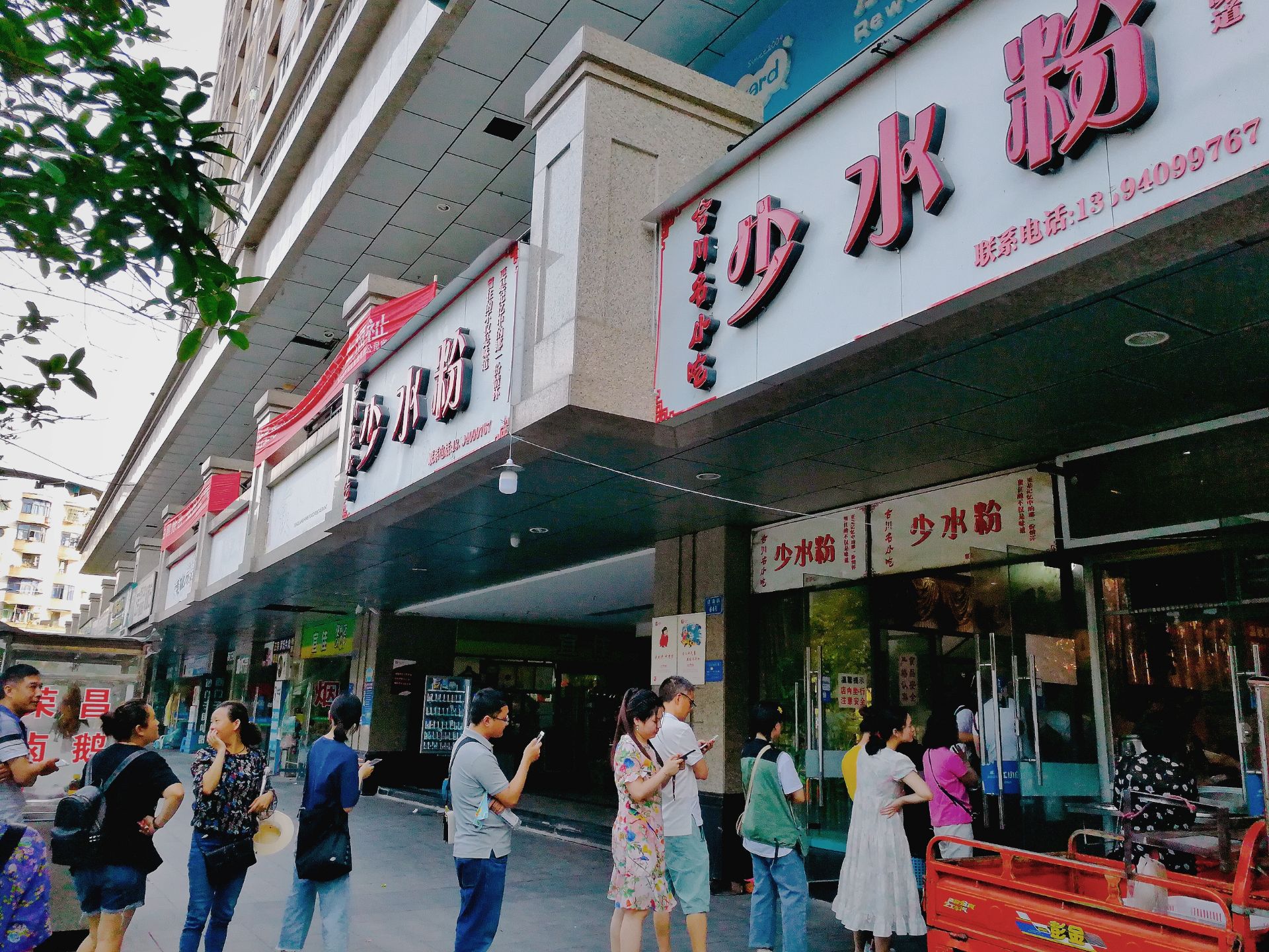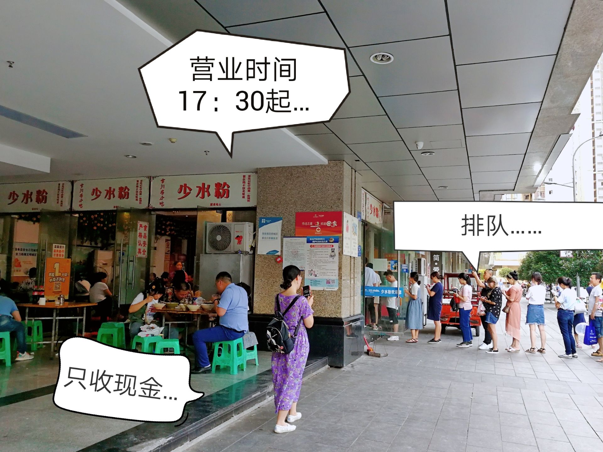 看过游友的推荐,在游览完涞滩古镇后,特意去了合川住宿,就是为了品尝一下少水粉。 17:30开始营业,我们准时去的,已经排起了队,点了少水粉和八宝粥,少水粉就是米粉加牛肉加卤蛋,大份13元小份11元;八宝粥7元,这里重点推荐八宝粥,先舀一坨蒸好的糯米,加银耳汤加花生芝麻大枣等,软糯香甜有嚼劲,真是太好吃了。吃完去文峰古街转了一圈回来又打包一碗八宝粥。