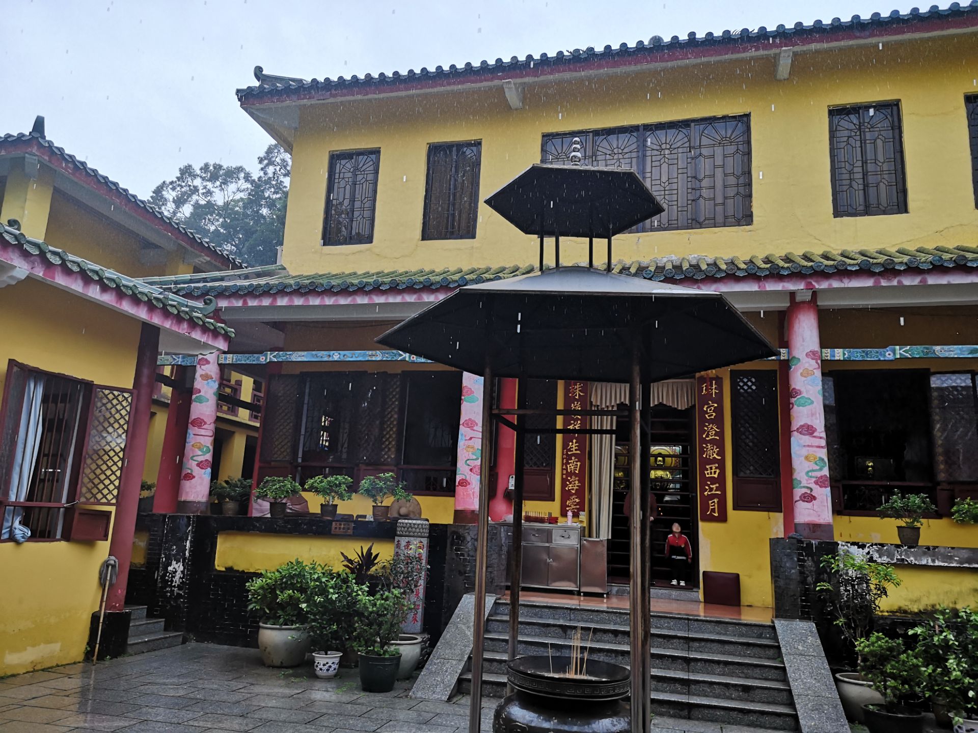 里面并不算是特别的大,是黄色建筑的寺庙,里面的人也不多,有一个佛堂,前面门口还有四大天王,可以...