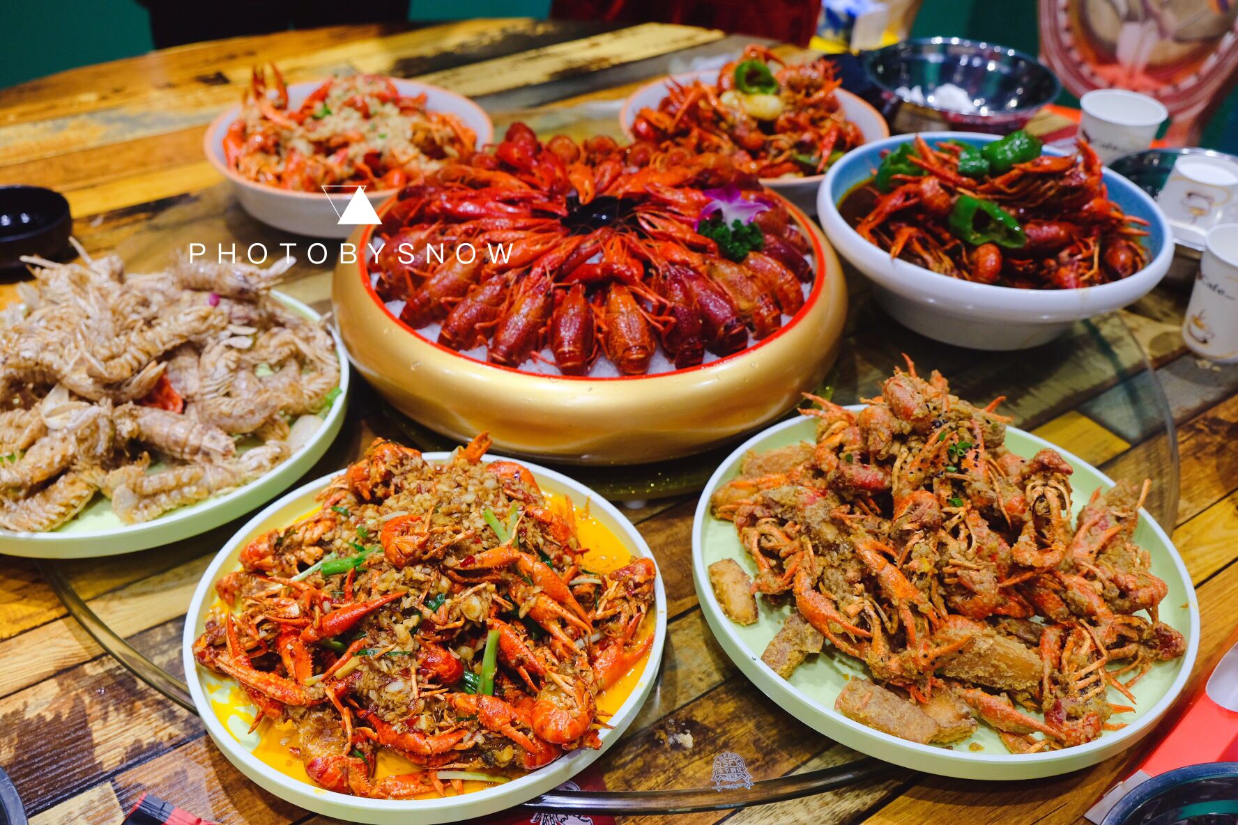 没有小龙虾的夏天是不完整的! 今夏已经刷了好几顿小龙虾,但还是要为这家虾乐园疯狂打call 店的位置的确不是很方便,地铁不能直达 来吃之前还埋怨小伙伴选了这家,明明那么多网红龙虾不吃 但吃完以后,满嘴辣油,欲罢不能,还想再来! 环境满灵的,够大够宽敞,一楼晚上有驻唱,我们在二楼包厢里自得其乐 平时人少,一般就选择十三香和黄焖口味尝尝鲜 这次人够数,可以敞开肚皮大吃一顿 点了冰镇、黄焖、蒜香、十三香、干煸、还有带膏皮皮虾 冰镇小龙虾 墙裂推荐点大虾,冰镇吃得出新鲜度,自带仙气出场,虾肉超有弹性,头上的黄都是满满的,不用沾芥末,本身就带着鲜甜味儿 蒜泥小龙虾 其实我平时不太会选择这款,蒜泥味怕太重,但这家的蒜泥配料太赞了,越吃越香,之后选择了泡饭,舀一勺蒜泥汤汁,你会知道,什么是直击灵魂的泡饭,惊艳之作,之前未曾有 黄焖&十三香小龙虾 微甜的黄焖味,麻辣的十三香,同样都加入了香糯的年糕,浸在汤汁里特别入味,龙虾个头也很大,吃起来吮指难忘 带膏皮皮虾 几乎每个虾都有手掌那么长,每一个里面都要红红的膏,太满足了,只是吃起来一定要当心,很容易被刺到