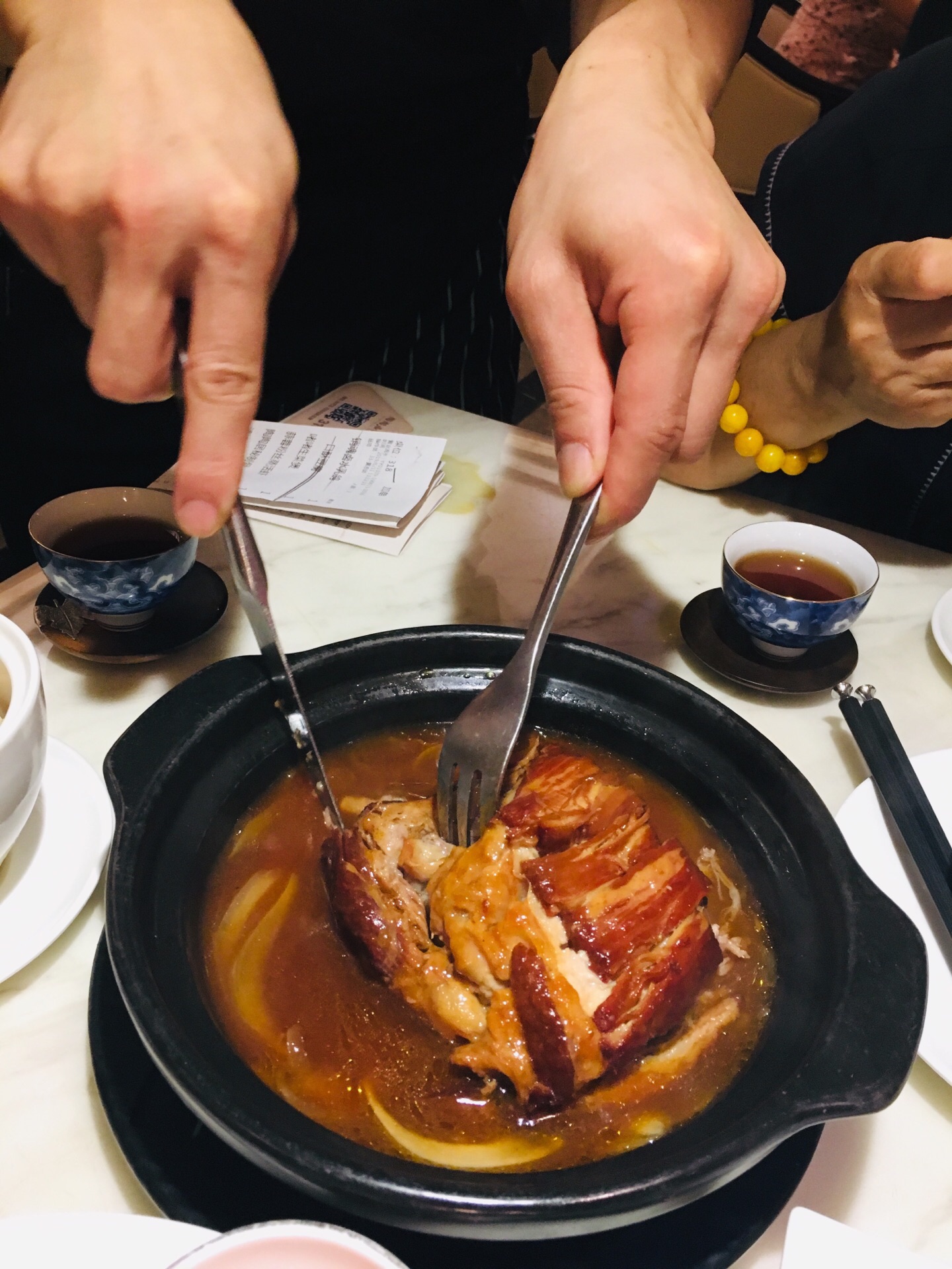 也不知第几次来了,每次都人山人海在取号排队,感觉2:00之后的下午茶比较宽裕。 这次没有吃点心,点了几个菜,可圈可点,果然还是不可以来点心店吃饭的。「销魂卤水乳鸽」的卤汁很好,乳鸽也十分入味,销魂不至于,但也指齿留香。「一口酥豆腐」比较有创意,金黄色的小球很漂亮,外酥里嫩,豆腐脑的细嫩光滑。「陶陶居秘制骨」这道菜颇让人失望,看卖相以为类似江南肘子,其实味道和口感都差太远。「蒜茸开片虾」一般,虾肉不嫩。「啫啫生菜煲」生菜少,不如虾酱通心菜。「煎酿虎皮椒」尖椒小而薄,做得不如顺德餐厅。吃饭踩雷,以后还是来叹下午茶点心吧。 [服务]2:00以后服务员就过来说等一会儿会关灯,感觉不是很好。