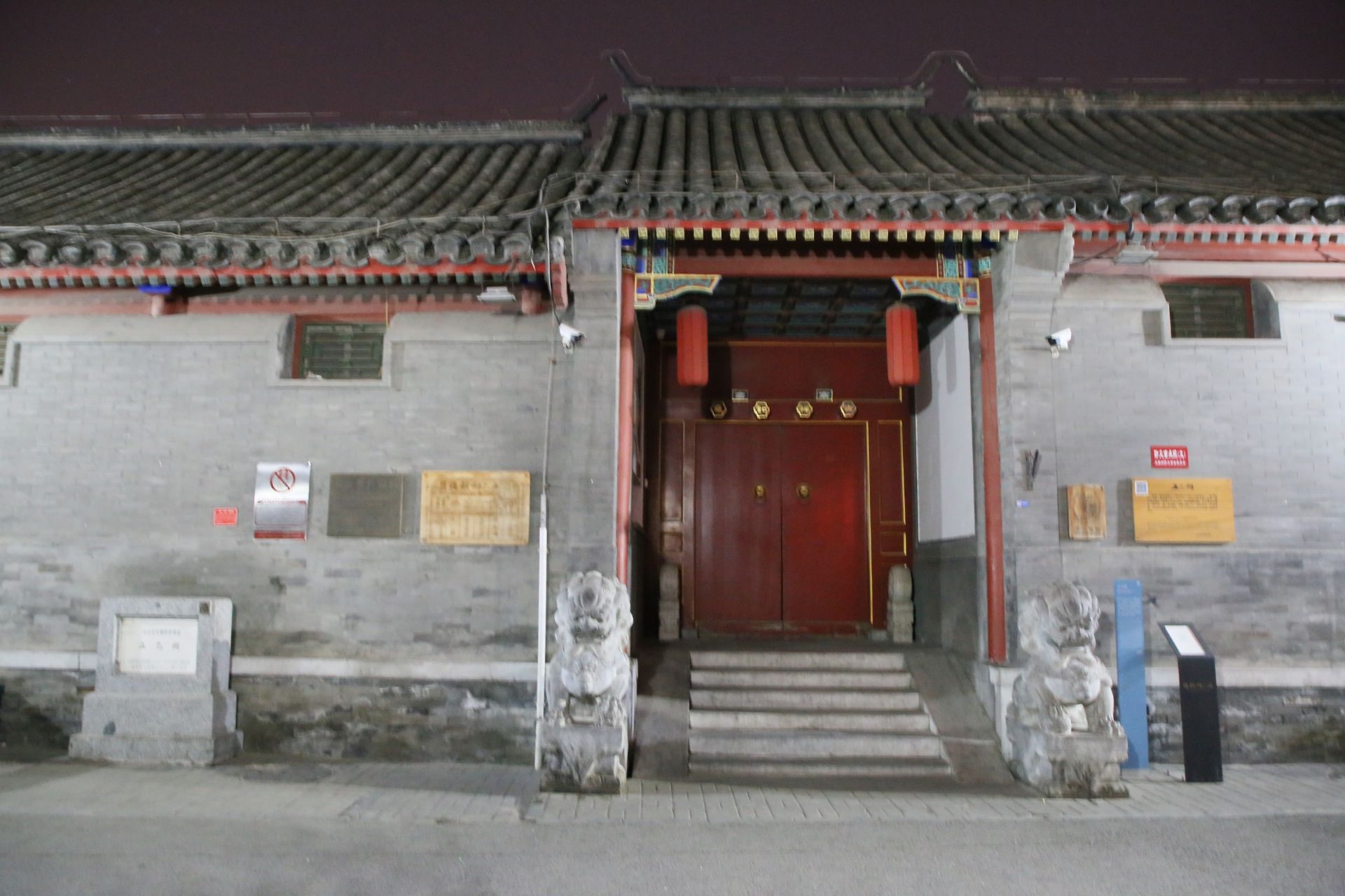 因为吃了个闭门羹,所以没有戏楼内部的照片。 当时是在《北京秘境》这本书里看到正乙祠戏楼的介绍的,脑海中浮现出的是电影《霸王别姬》里的场景,瞬间觉得好穿越,于是很想去亲眼见见。 除了查了戏院地址,啥功课也没做,想当然觉得戏院么晚上总归也开的咯总能进去看看的咯。 结果,从前门屁颠屁颠沿着西河沿大街走过去,快要走到尽头了才到戏院,然而却吃了个闭门羹。 戏院没开。 门口有介绍,还有演出的戏名。 后来我再去查,了解到订票购票环节,晓得了以后要有准备的去。