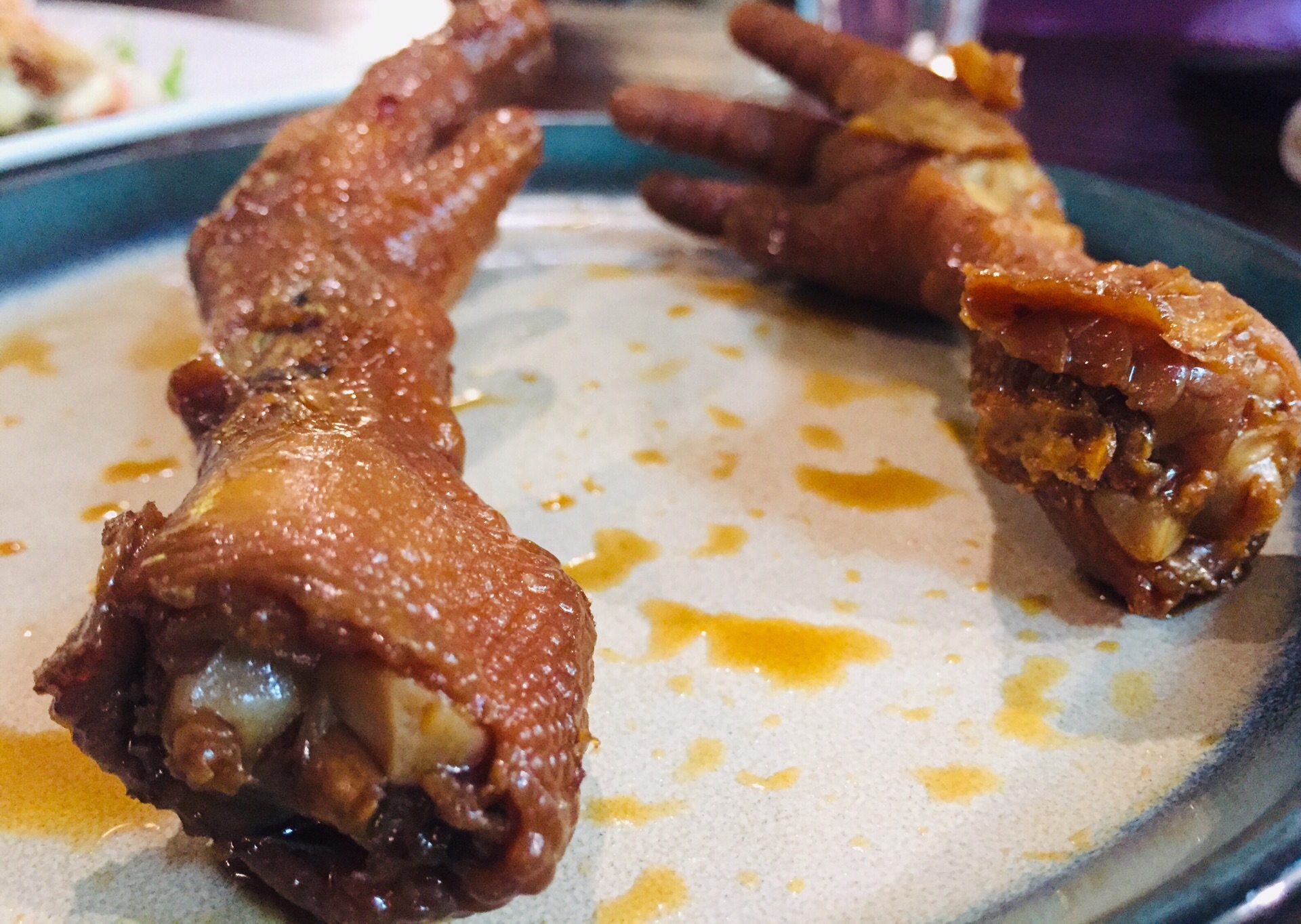 幸福是她城有他 登高而望远,巷深而酒香 她城有他,有的是手艺的味道, 一手的好菜就在这条通往灵隐的路上。 芥末虾, 创意的碰撞,虾线处理干净,裹进芥末,色拉,有一种直抒胸臆的迫切感,刚口一点辛辣,很快就泯灭了,留下虾的鲜美,好吃。 胖嘟嘟的醋鸡爪, 一个顶两,果断再配上花生,嗨起来,缘分让我们相遇~光年之外~