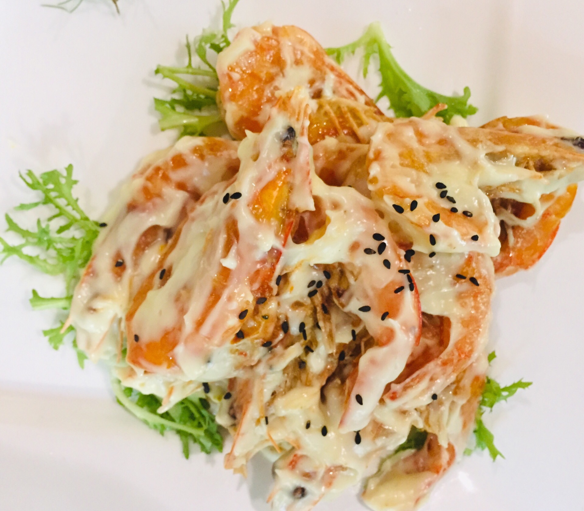 虾线处理干净,裹进芥末,色拉,有一种直抒胸臆的迫切感,刚口一点辛辣,很快就泯灭了,留下虾的鲜美,好吃
