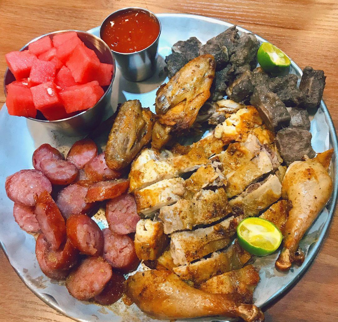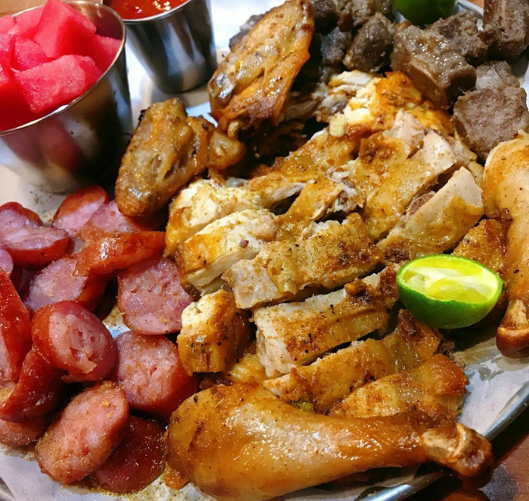 BBQ联合拼盘:68, 烤肠、烤鸡、小排,都很入味,尤其是烤肠真的好吃