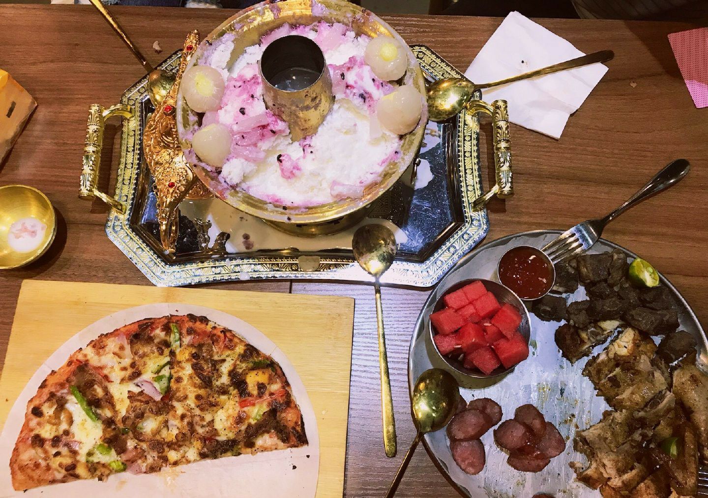 星角榴芒冰锅创造者 桂酿妃子笑:78,六月新品,应季水果荔枝上市了推出的新品,颜值和口感并存。荔枝是去核的,里面黄黄的塞的是菠萝肉,真有创意。上面还铺了椰果肉,然后是绵绵冰,绵绵冰里面底部还有爆浆珍珠哦,感觉像是挖宝一样。 BBQ联合拼盘:68, 烤肠、烤鸡、小排,都很入味,尤其是烤肠真的好吃。 新奥尔良鸡肉披萨10寸:58,无功无过,我吃不出鸡肉的味道,不过芝士有拉丝。 烤肠咖喱饭:22,咖喱味不浓,加了玉米粒和青椒红椒洋葱,我个人不喜欢,烤肠真的好吃。