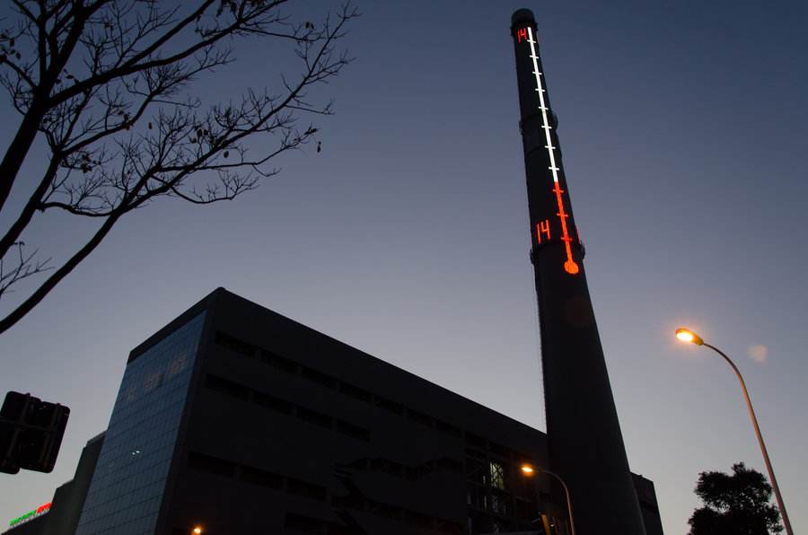 位于上海滨江大道的烟囱广场是2010年上海世博会时建造的,原来是一家工业厂区里的工业烟囱,改造...位于上海滨江大道的烟囱广场是2010年上海世博会时建造的,原来是一家工业厂区里的工业烟囱,改造成现在的烟囱广场,上面还有温度计。