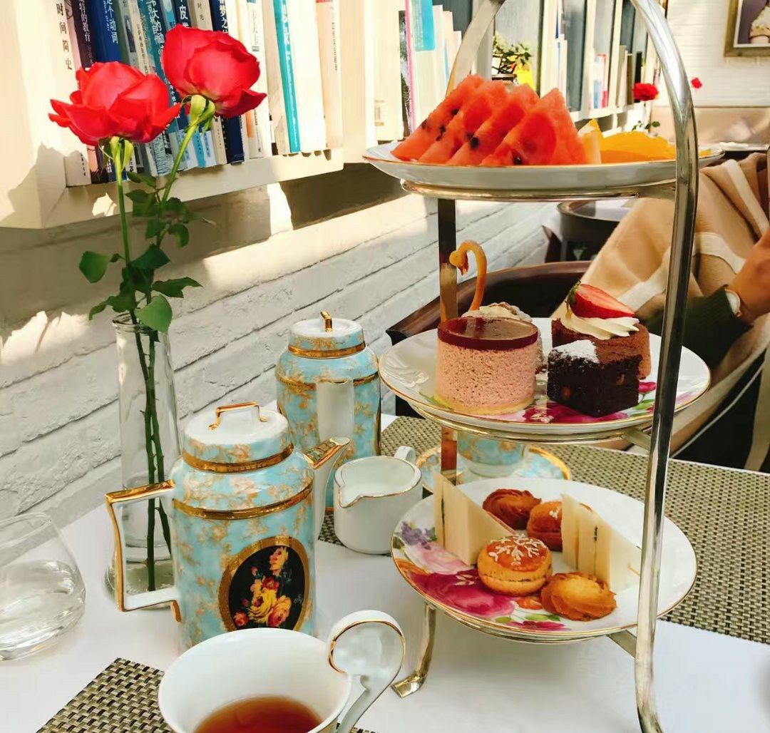 隐逸月湖别墅酒店餐厅 共青路77号 人均:100 隐藏在月湖公园旁的一家酒店,下午茶地点在自带的餐厅里,地方不大但是环境很棒,顶上是玻璃,吧台后面有楼梯可以通往露天的位置。 下午茶套餐 点了一个双人套餐,这家店是一个甜品架配两壶茶,一般很多店是只会配一壶茶,这个好评,三层甜品架包含了甜咸甜品和水果,甜品架做的口味还可以。