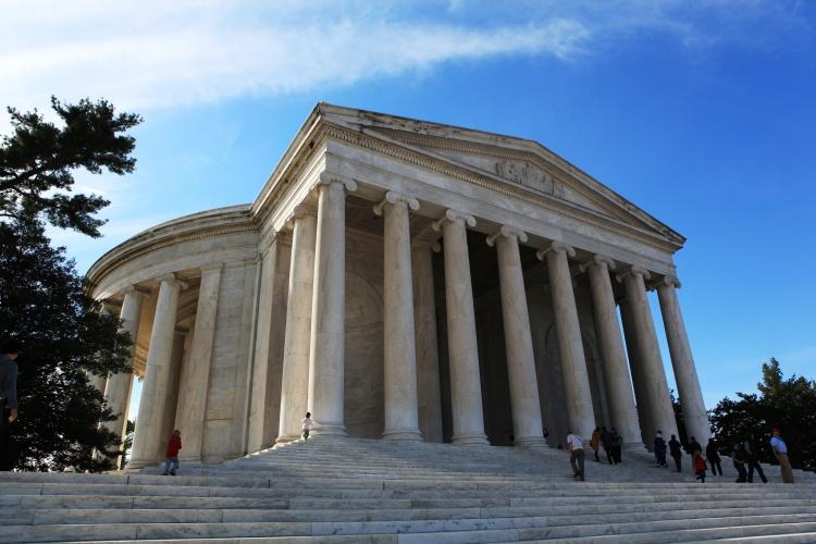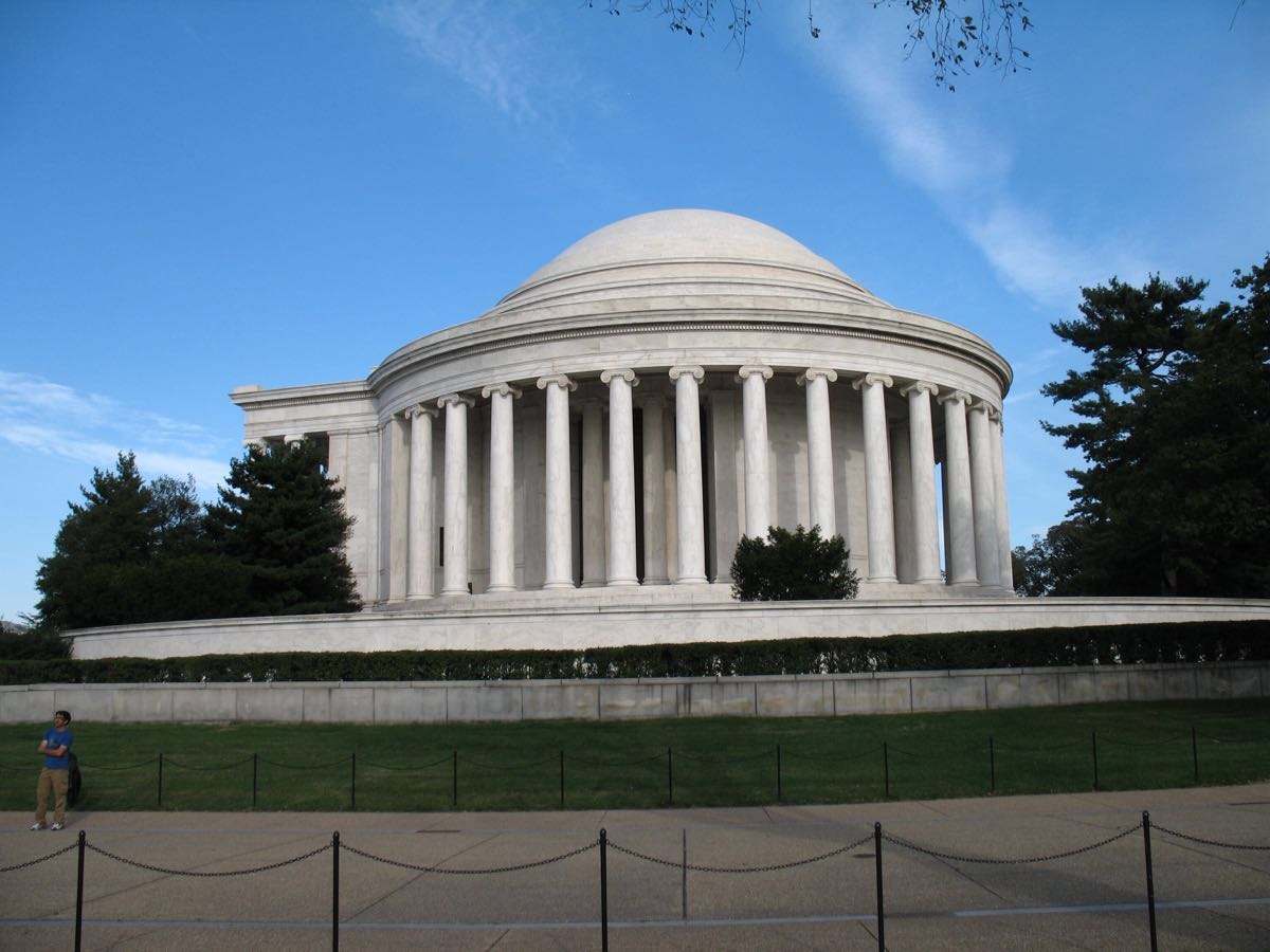 这个纪念堂很大,很引人注目,也有很脏。纪念堂天花板上有很多黑色的条状物和斑点。真的需要下大力气清洁一下。最近爆发的洪灾也把马路和人行道上的树枝冲了进来。杰佛逊纪念碑很赞。杰佛逊是一个伟大的开国者,一个雄才大略的人。值得一去。