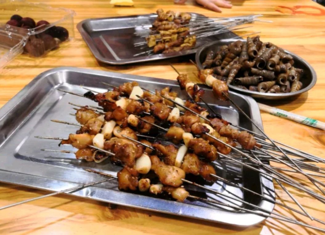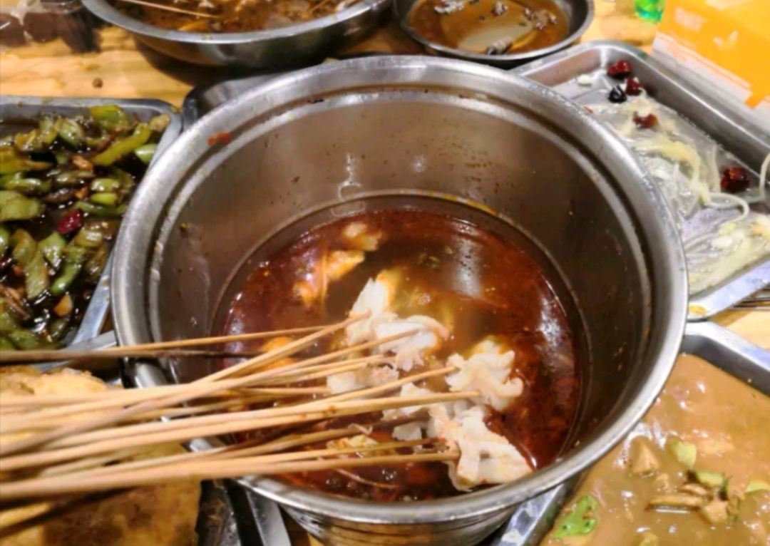 去这儿不再众口难调 地方很好找,就在经七路上,可惜已经没有地方啦,我们呼啦占了一圈,终于等到了座位。 大份肥蛤,味浓好吃,尤其是油炸馒头片蘸着汤吃,太美味了。但是肉掉下来太多啦,先挑了会蛤喇皮,又捞肉,一群人捞啊捞,画面喜感。 大份小龙虾,不太辣就是麻,没开背滋味没进去,剥出肉蘸汤吃还不错。 辣子田鸡,有点害怕,就尝了一个,酱爆的味道不错,肉稍微有点老。 刷肚,味道有点寡淡,我们直接放肥蛤汤里蘸着吃了,好多串菜都掉汤里了,继续捞着吃。 串是分着给的,我们只尝到了小羊肉串、蒜瓣肉、牛肉大串,感觉小羊肉串一般情况,蒜瓣肉和牛肉大串还不错,肉嫩有滋味,等我们走也上翅中了,比较遗憾。 其他菜还点了土豆丝、凉拌西红柿、拌黄瓜、爆炒卷心菜,味道中规中矩,量也挺大。 还是人多了合适,饮料我们自带的,这一桌子菜下来人均60元左右,还是比较实惠的。 就是店太小,环境太嘈杂了,拼了桌后我们说话基本靠吼,哈哈哈哈。